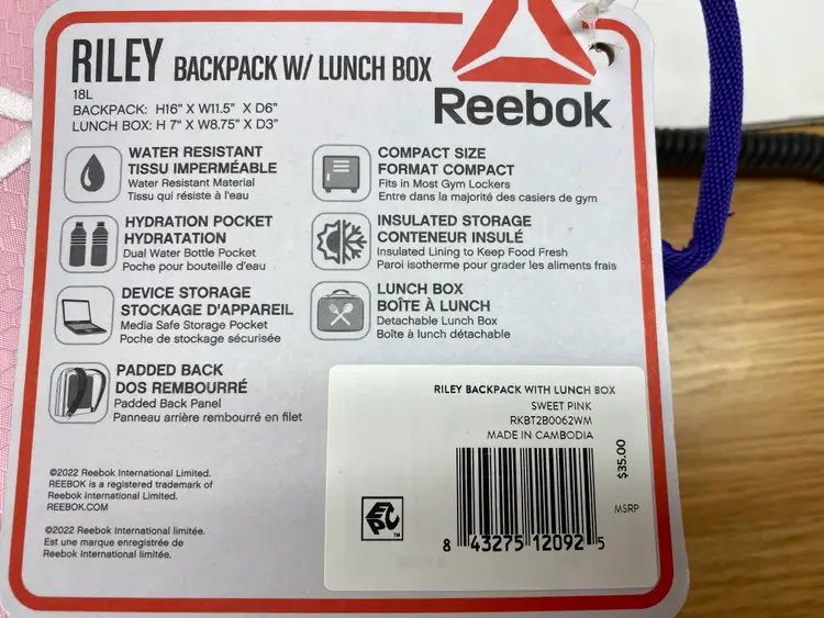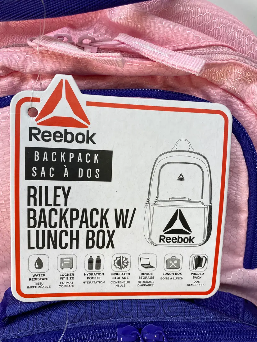 Reebok Pink Girls School Sports Activity Backpack With Lunch Box NWT