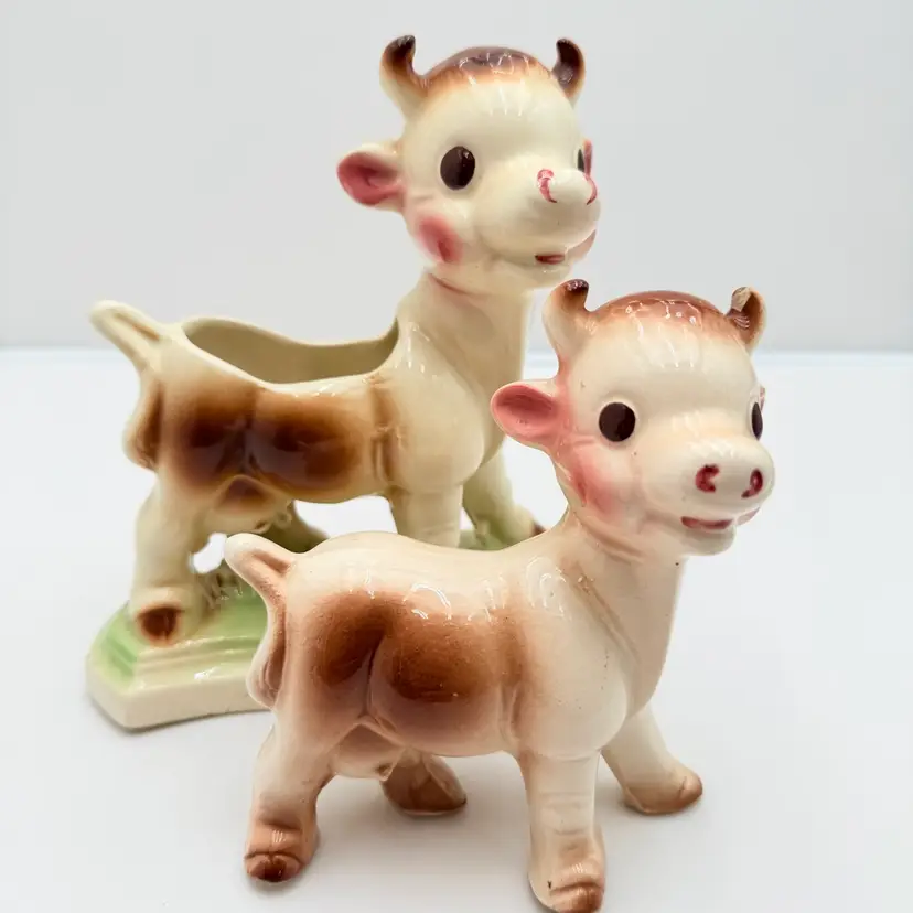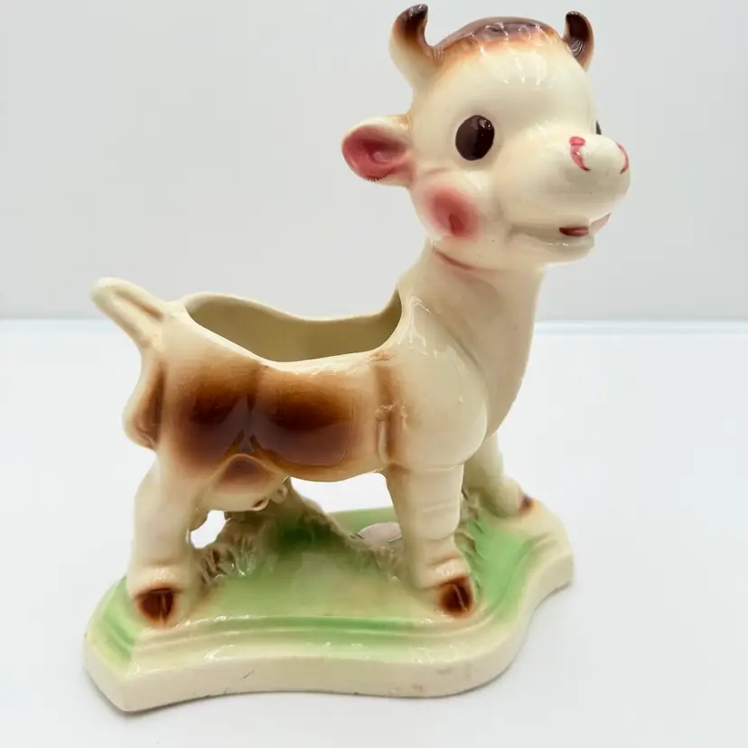 Rempel Milky The Cow Ceramic Pair With figurine And Planter