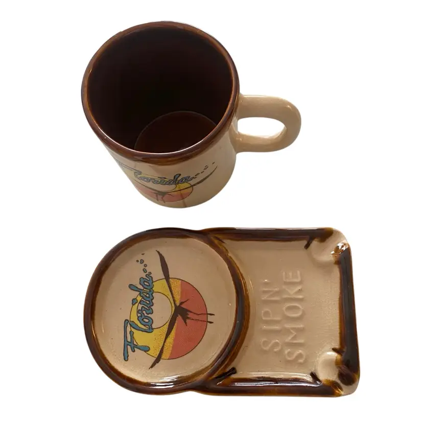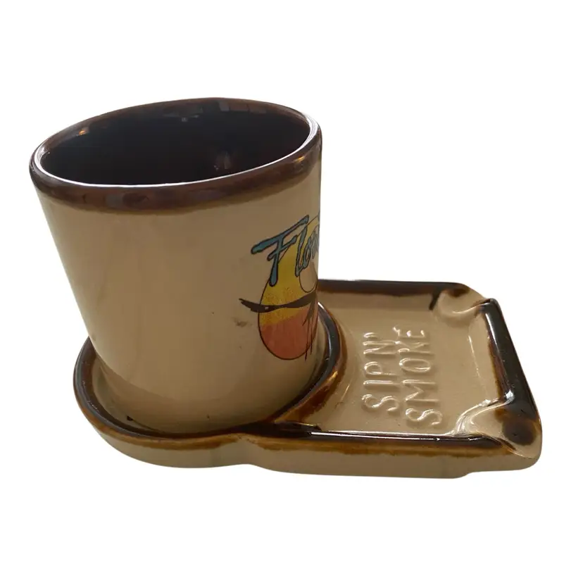 Retro Ashtray, Sip & Smoke, Vintage Ashtray and Matching Mug, 1970's Coffee Mug and Ashtray. Florida made in Taiwan