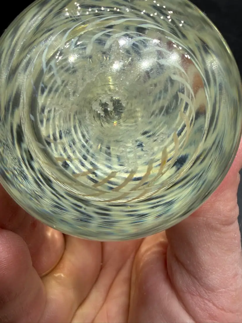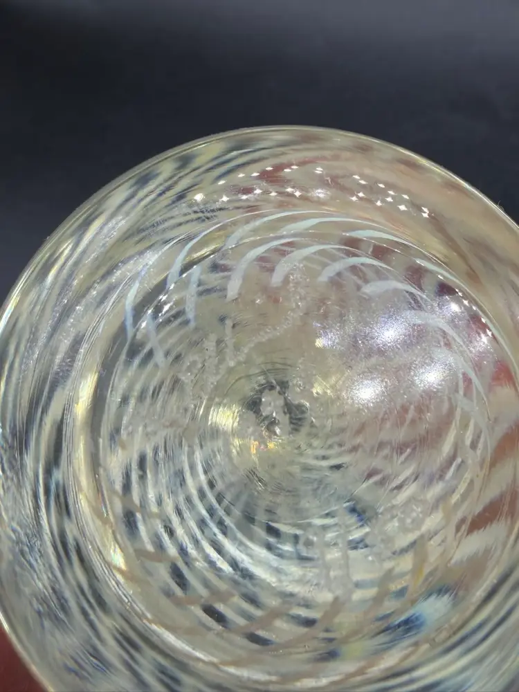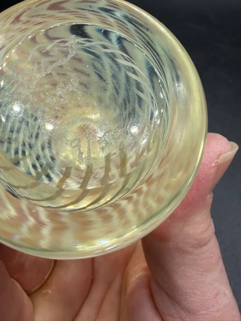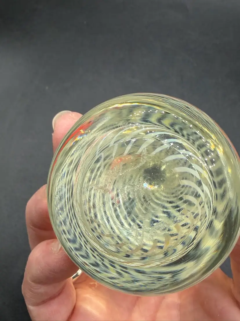The ROBERT EICKHOLT Limited Edition 9/50 Glass Paperweight is a vintage piece featuring a swirl ribbon pattern, hand-blown from clear art glass. This unique paperweight is a one-of-a-kind collectible from the late 20th century, showcasing a detailed and intricate design. Made in the United States, this limited edition piece bears the signature of Robert Eickholt, adding to its value and charm for collectors of art glass paperweights.