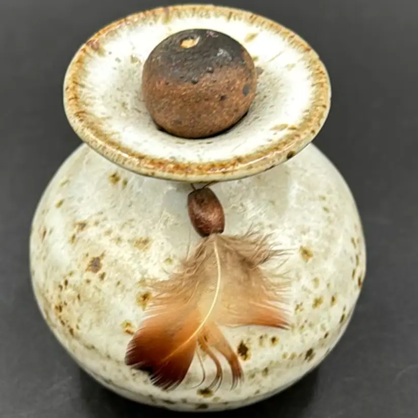 31/4”T 31/2”W no chips, cracks or breaks in wonderful handmade condition has makers, mark