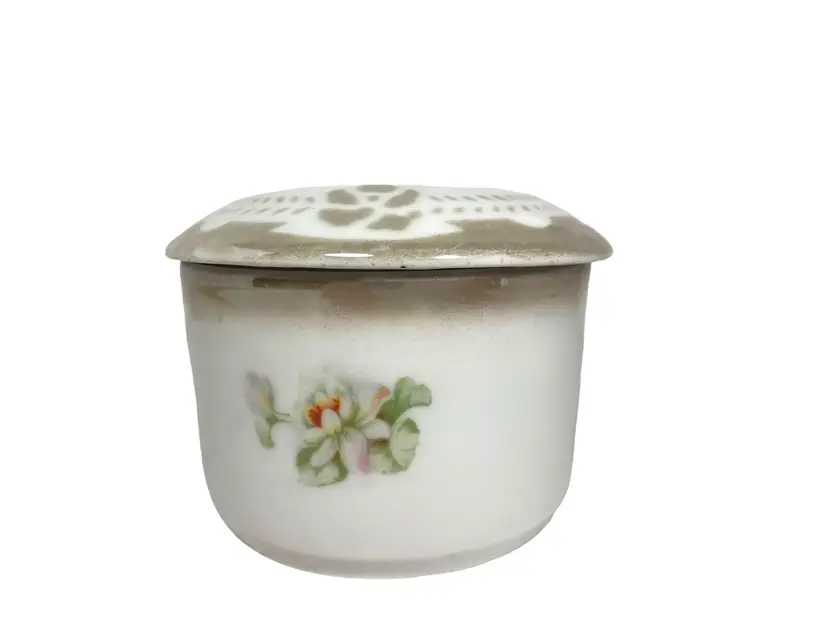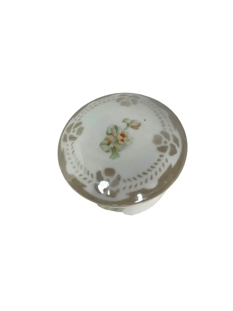 Round Trinket Vanity Lidded Jar Transferware Flowers #282 Germany