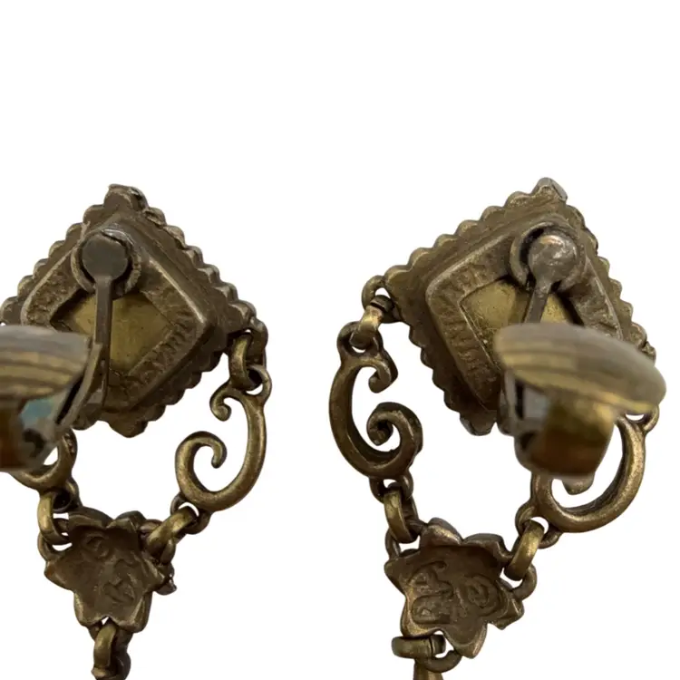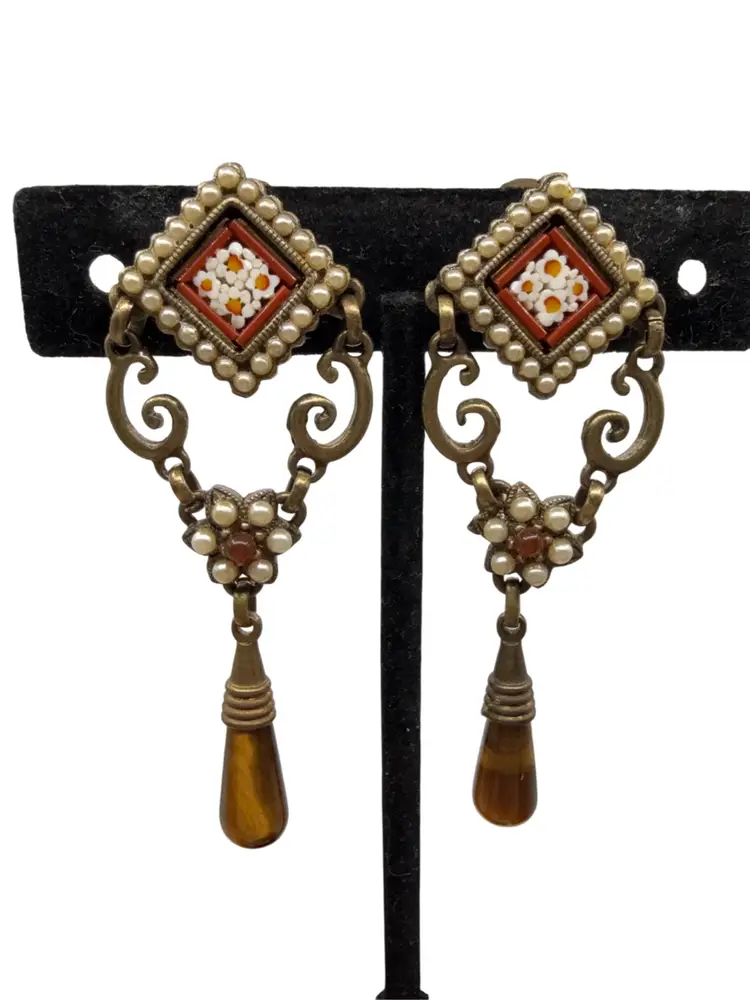 Roxanne Assouline Micro Mosaic Dangle Clip Earrings Cats Eye Dangle
