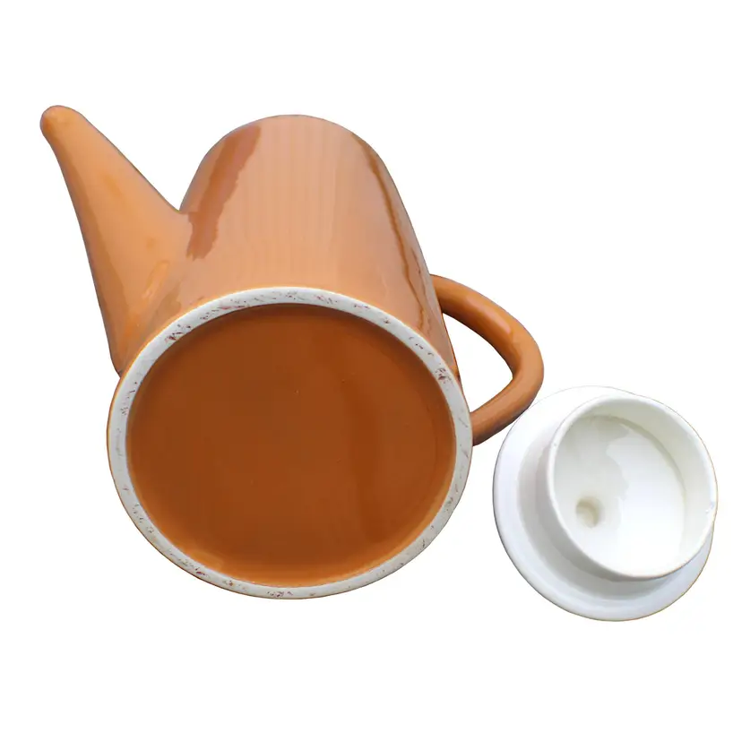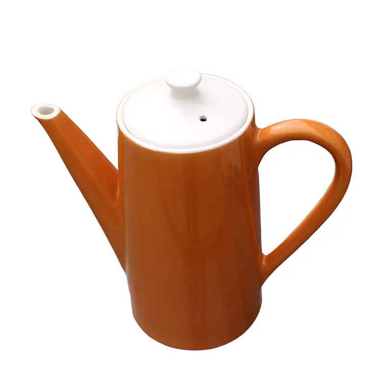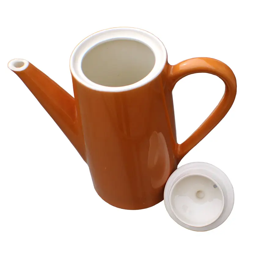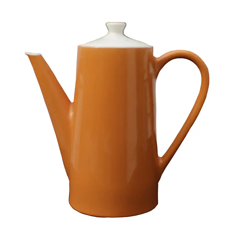 Royal China USA Ceramic Coffee Tea Pot In Harvest Gold With Long Spout. It's In Very Good Condition No Chips Or Cracks And Measures 8.5" tall x 9" wide (from spout to handle).