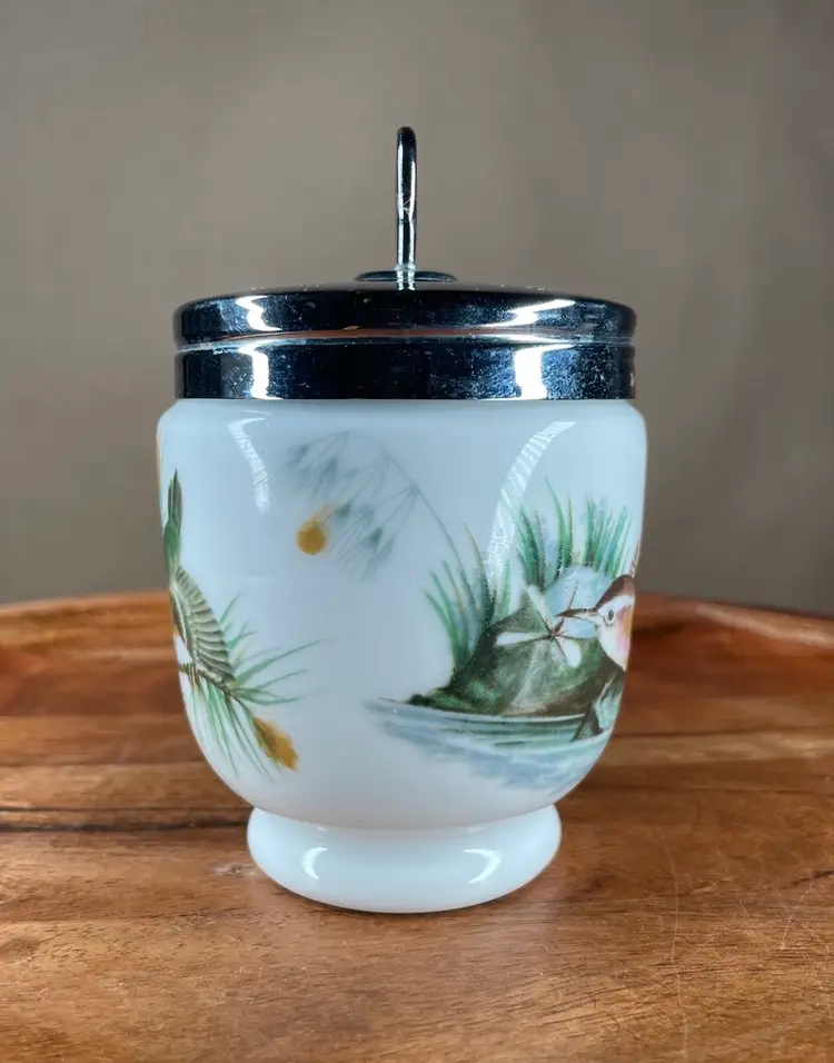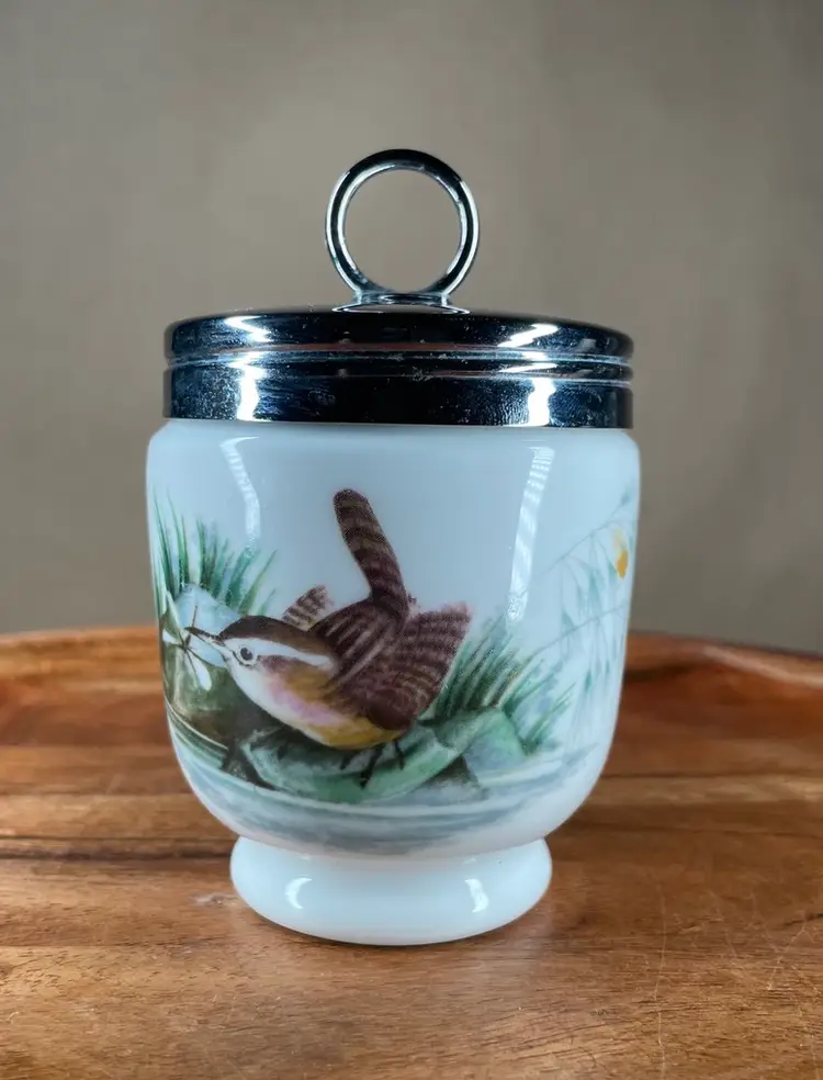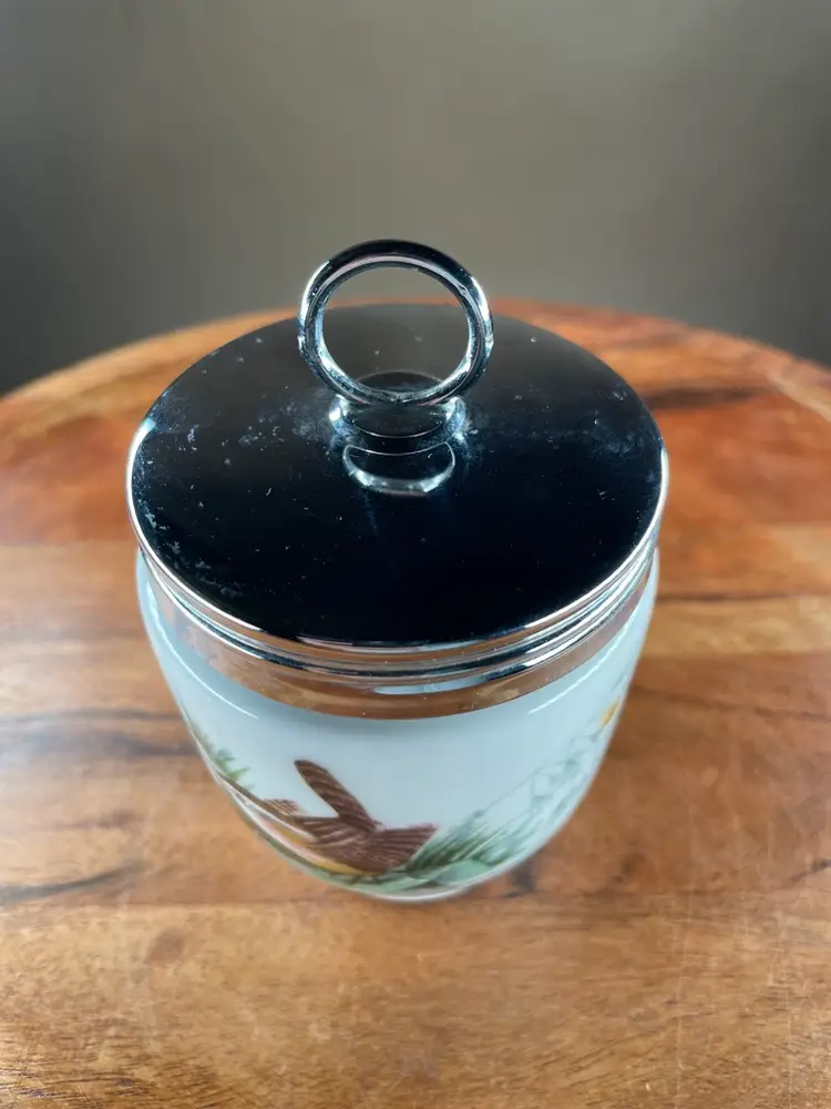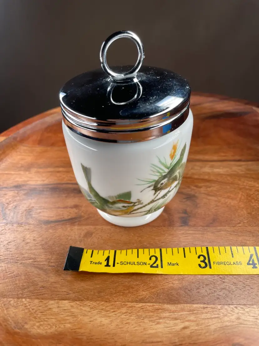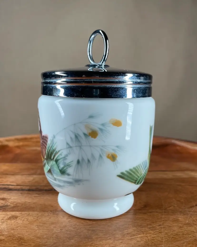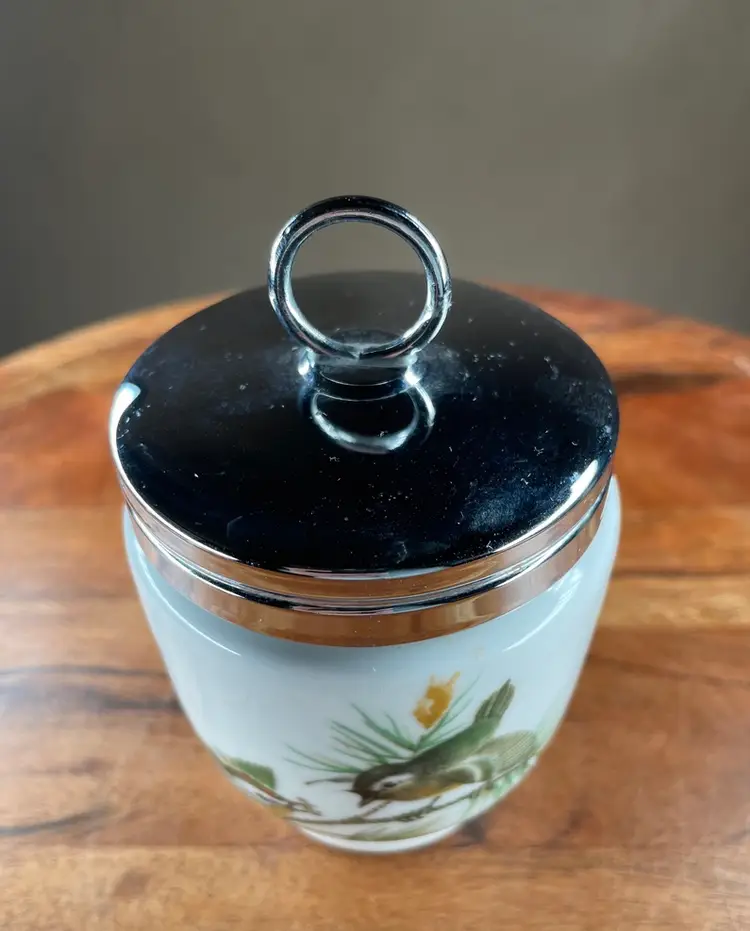 Royal Worcester Porcelain Egg Coddler With Metal Lid Birds Kitchen Decor