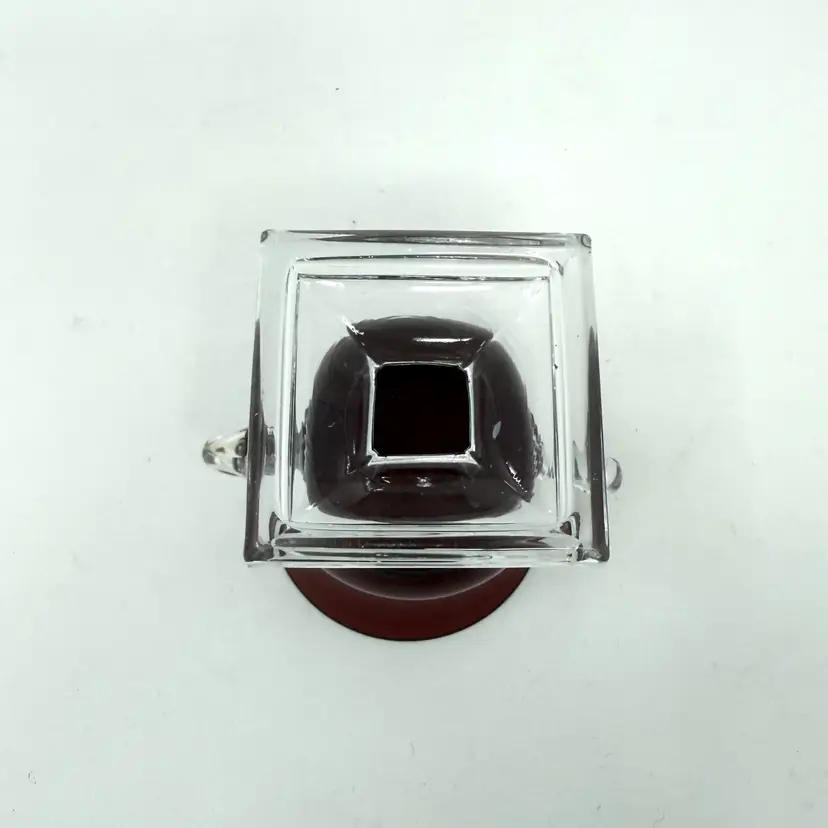 The glass shows excellent clarity and color saturation, and the clear base provides a striking contrast to the warm red body. This piece is unmarked, as was typical for Duncan & Miller’s Grecian series, and remains in excellent vintage condition with no chips or cracks.