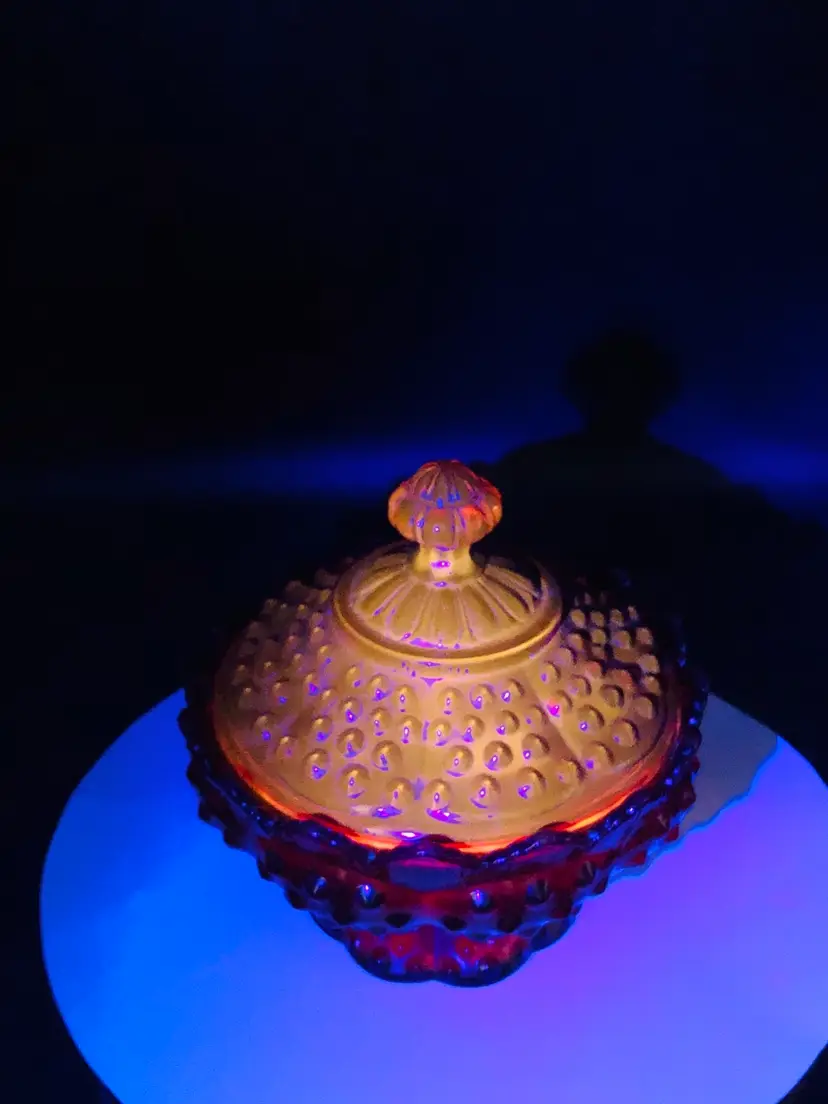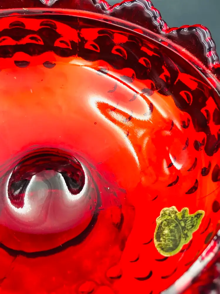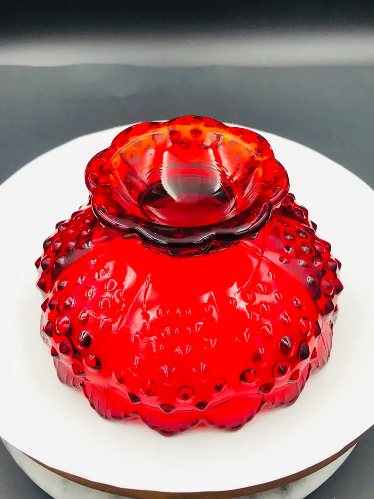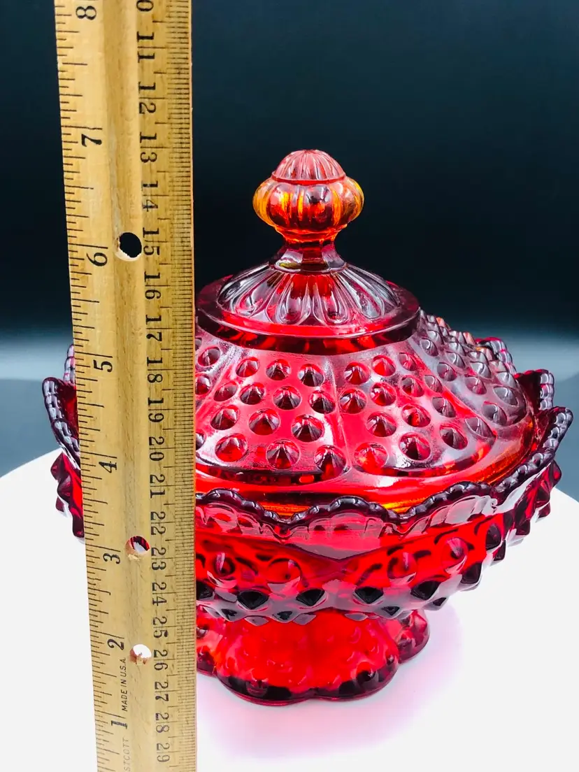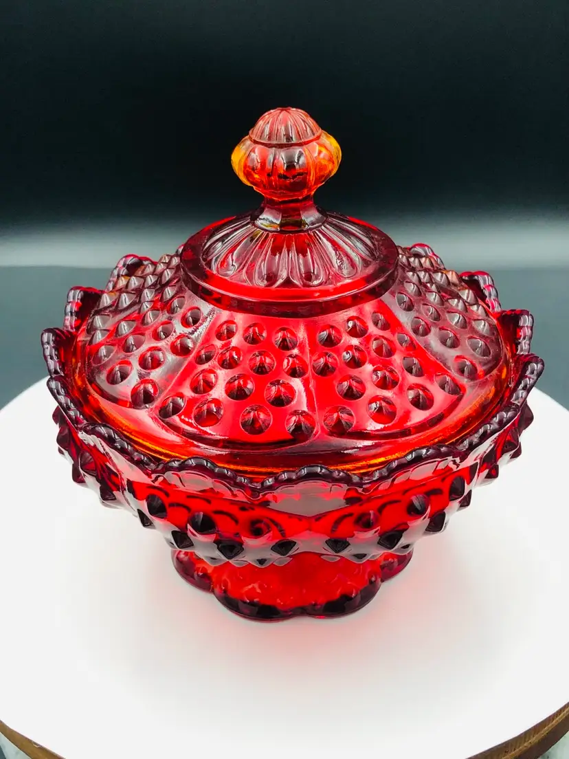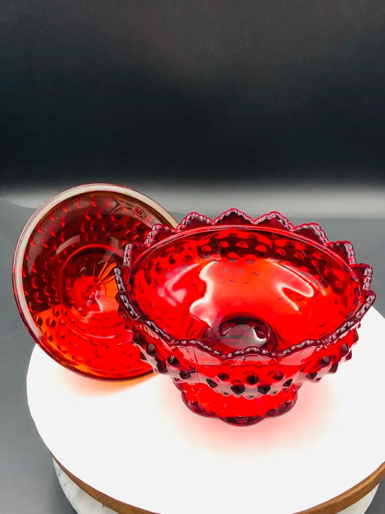Ruby Red Hobnail Fenton Lidded Candy Dish Glows