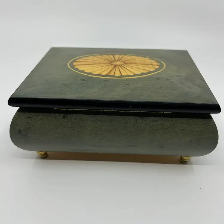 San Francisco Music Box Co Faux Inlaid Wood Felt Lined Italy