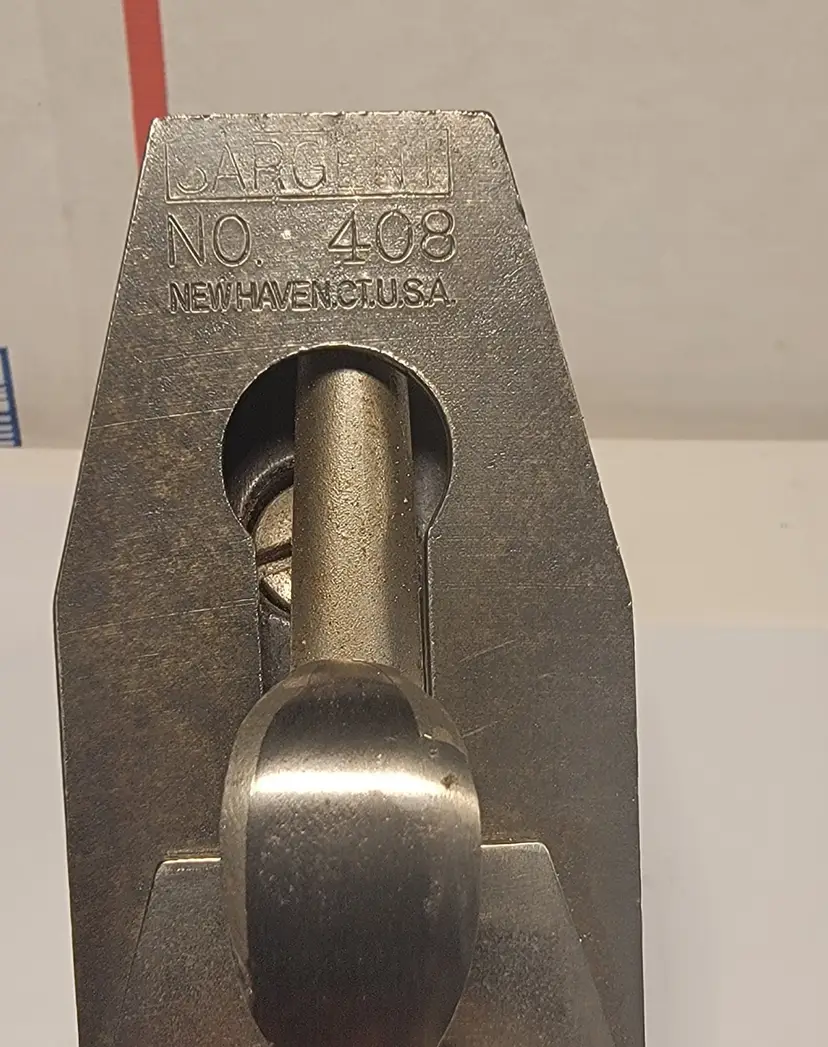 Up for sale is a nice Sargent #408 type 5 hand plane. Same size as a Stanley #3. It has a smooth Sole and it is flat. The iron is 1 3/4" wide and sharp, with very good length. The tote and knob are in great shape with no cracks or chips or major marks.