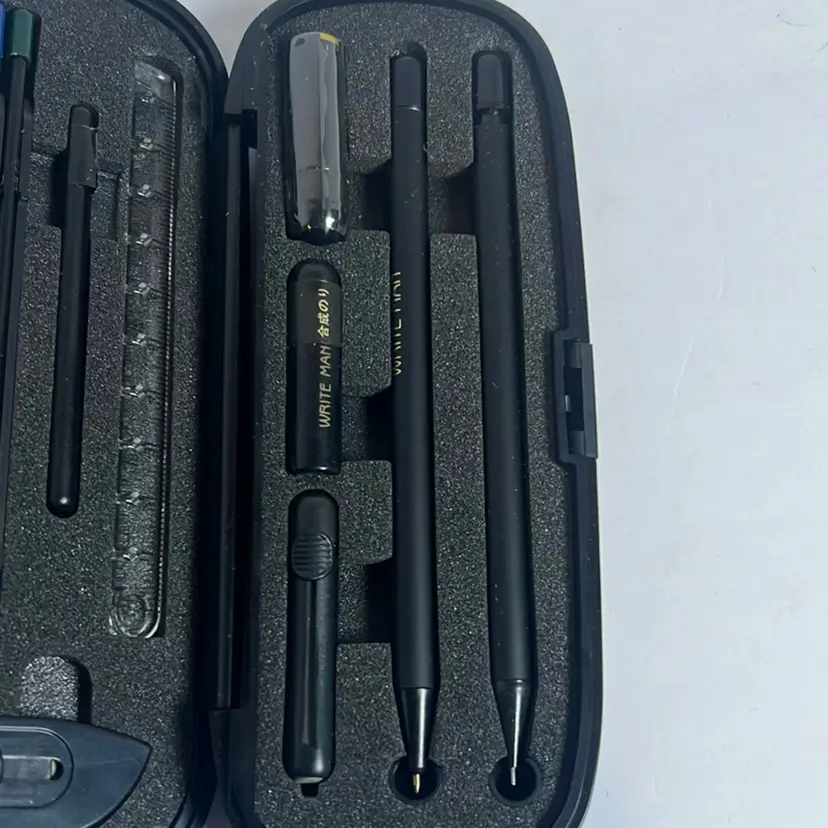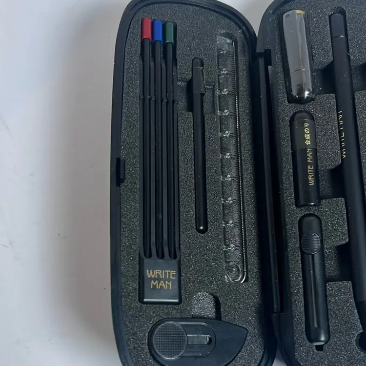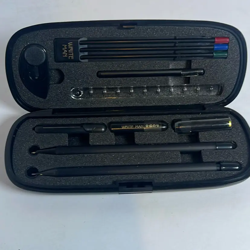 Vintage SENSI Write Man Mechanical Pencil & Drawing Set in Hard Case – Complete Kit This listing is for a vintage SENSI Write Man mechanical pencil and drawing tool set in its original hard case. The kit appears complete and includes: