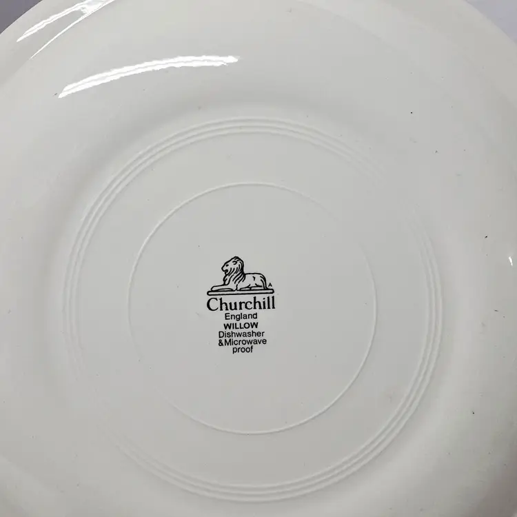 Made by: Churchill Pattern: Willow Blue (Georgian Shape) (Discontinued) Place of Origin: England Type of China: Set of 2 Chop Plates / Round Platters Measurement: Diameter: 12 3/4 in Markings: SEE PIC Condition: Used, light wear consistent with age; no visible cracks or chips. SOLD AS IS NO RETURNS Shipping: Most Mondays, Wednesdays & Fridays
