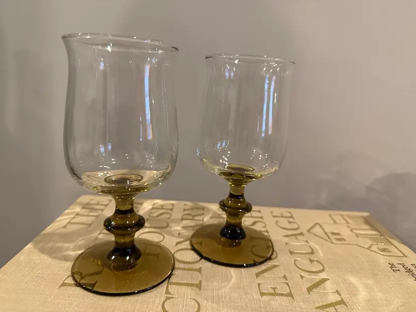 Set of 2 Libbey Tulip Brown Tawny Wafer Stem Wine Glasses