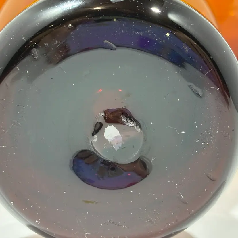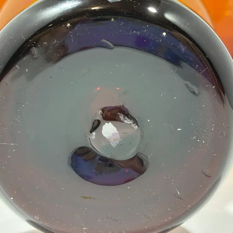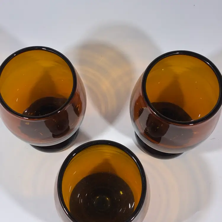 Set Of 3 Hand blown Amber Dark Brown Glass Rounded Pedestal Goblet Glasses