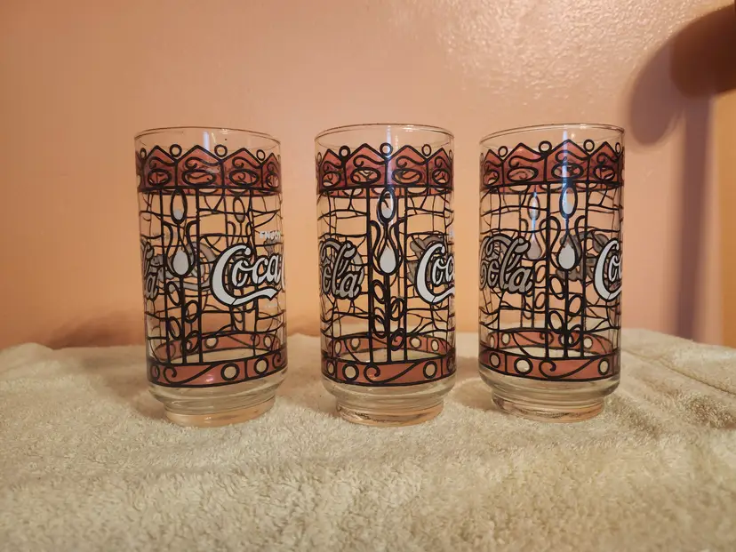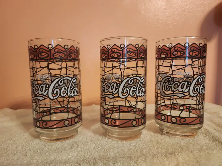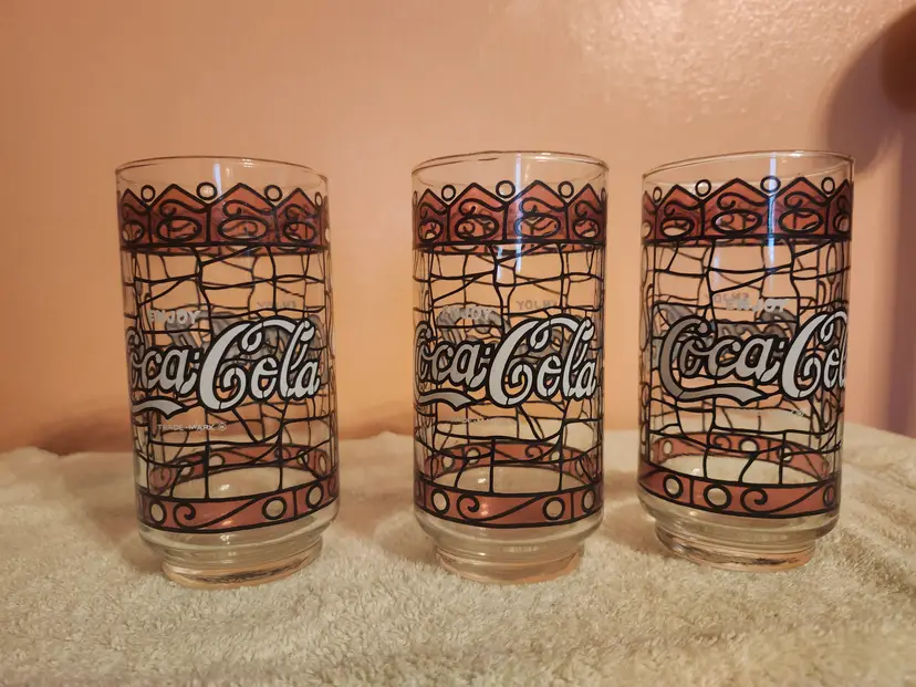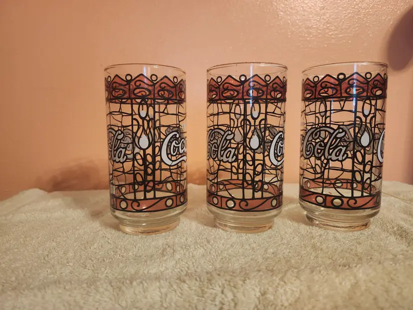 Set Of 3 vintage Coca-Cola stain glass drinking glasses