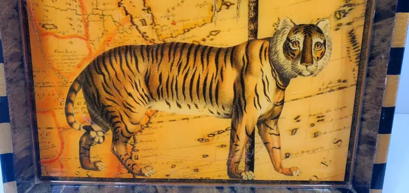 Signed Arnie Mordica San Raphael, CA Decoupage Tiger Serving Tray