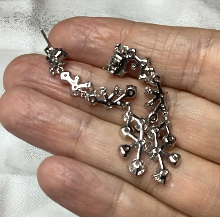 Silver Tone Clear Rhinestones Post Earrings 2”