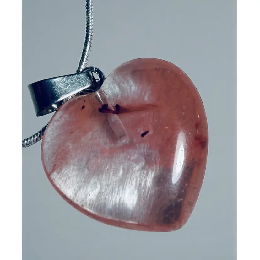 Silver Tone Pink Glass Cherry Quartz Heart On New 20” Chain Necklace