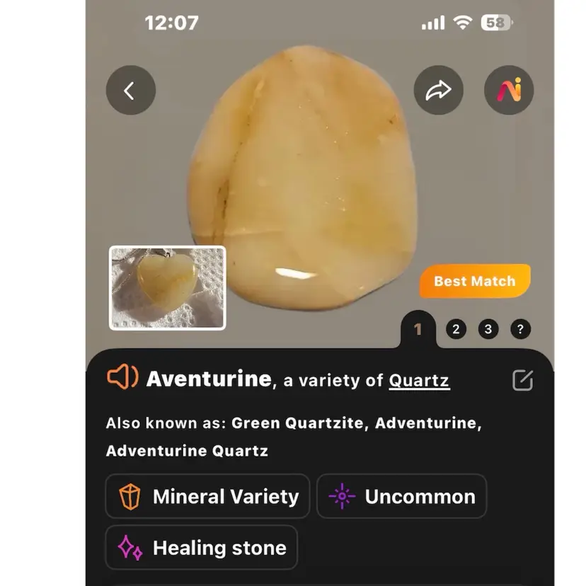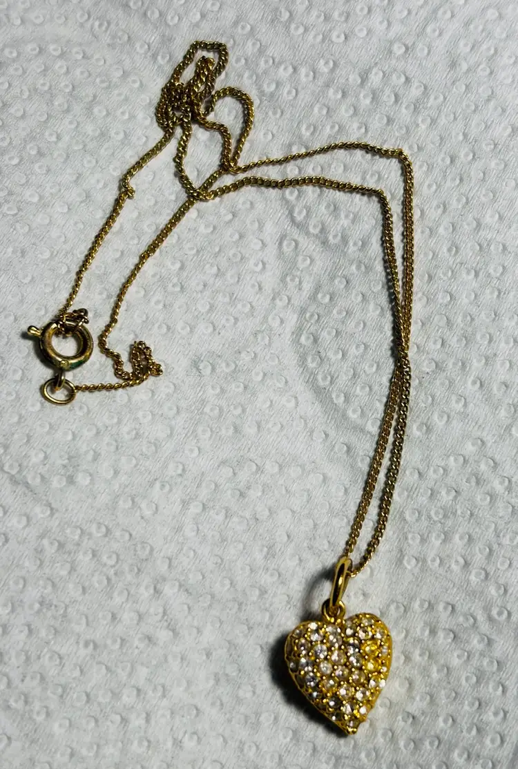 Silver Tone Yellow Aventurine Heart On New 20” Chain Necklace