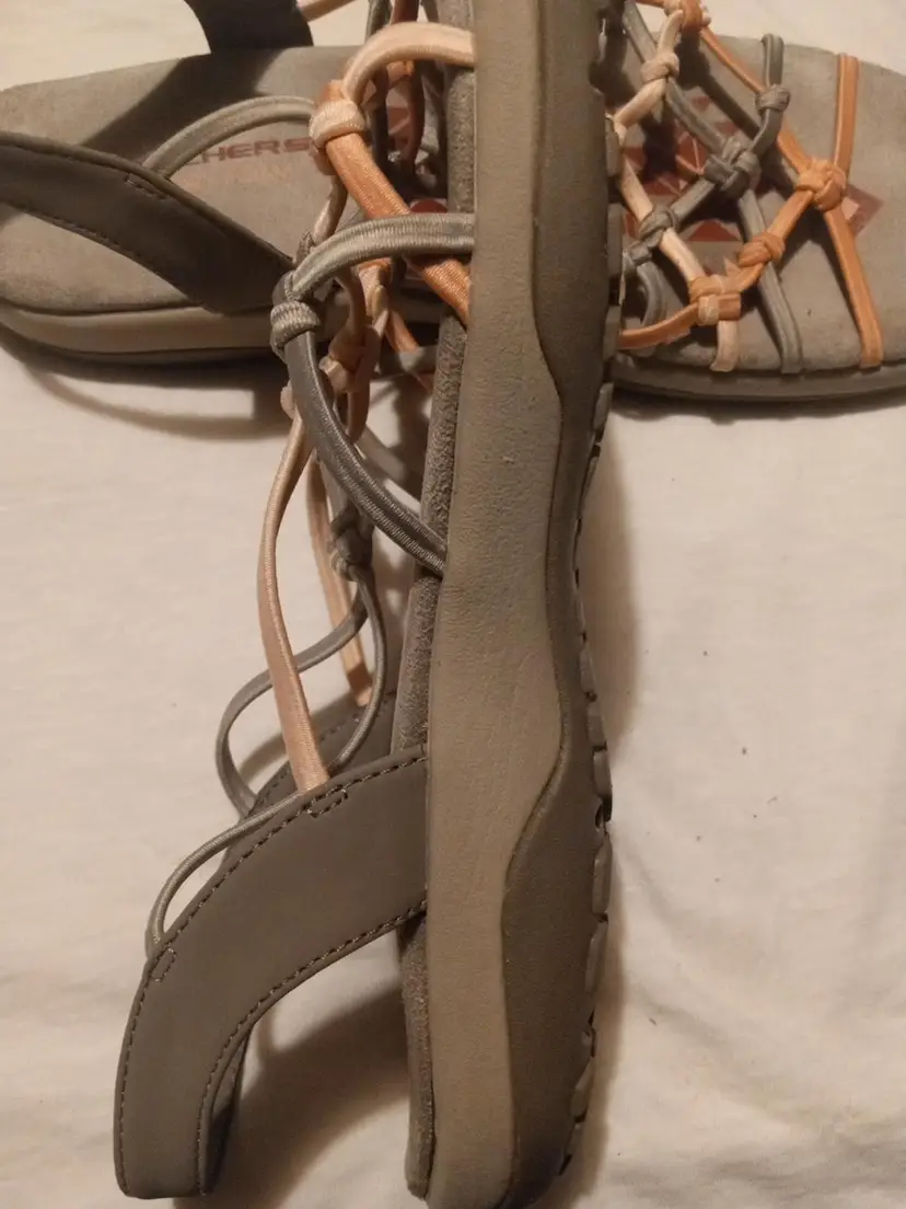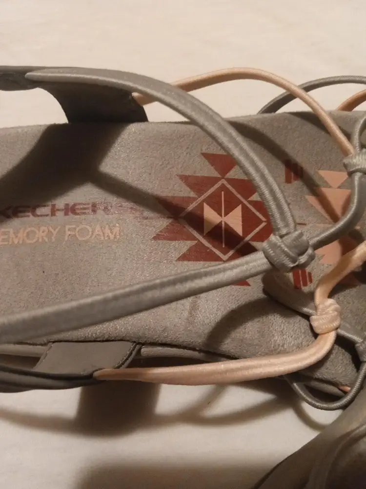 Skechers Pink & Grey Love Knot Sandals Size 10 Pre Owned Estate Sale Beautiful Pair