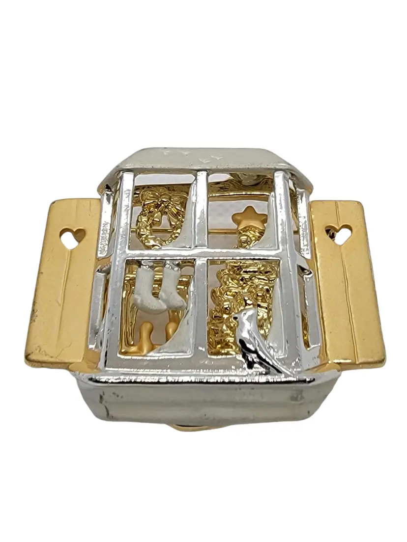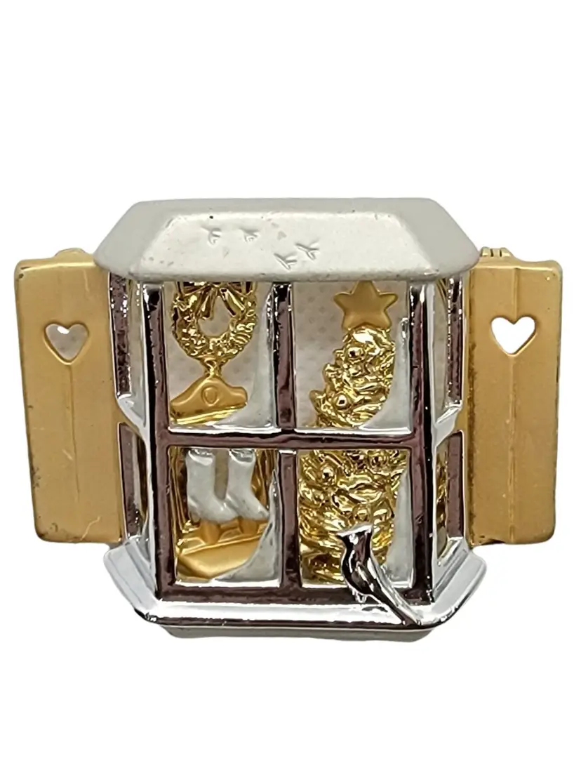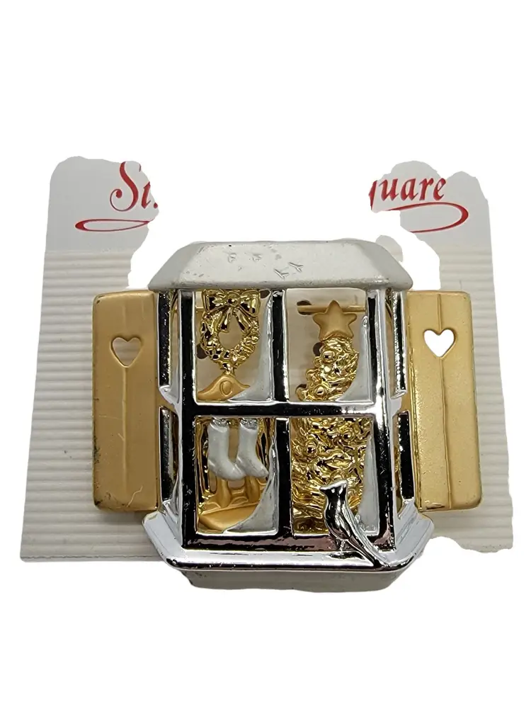 St. Nicolas Square New Silver-Tone Gold-Tone Christmas Window Scene Brooch