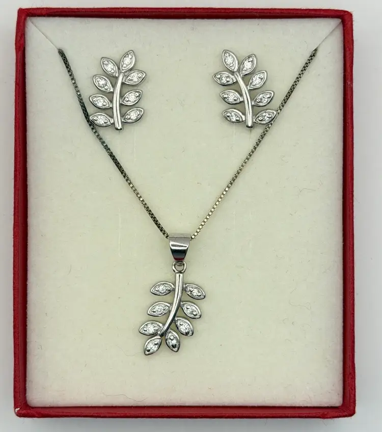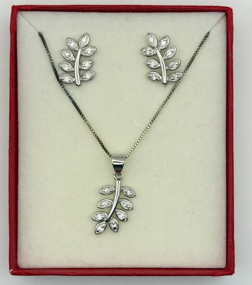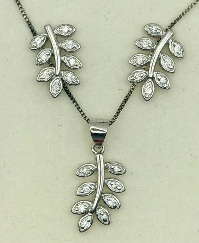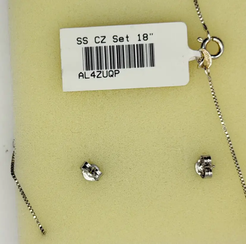NWT old stock. 18” box chain and stud style pierced earrings in real Sterling Silver 925 and CZ stones.