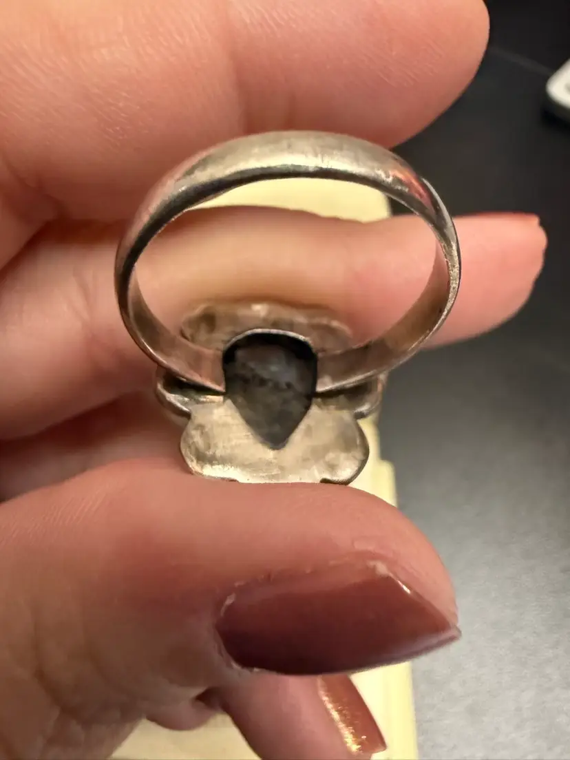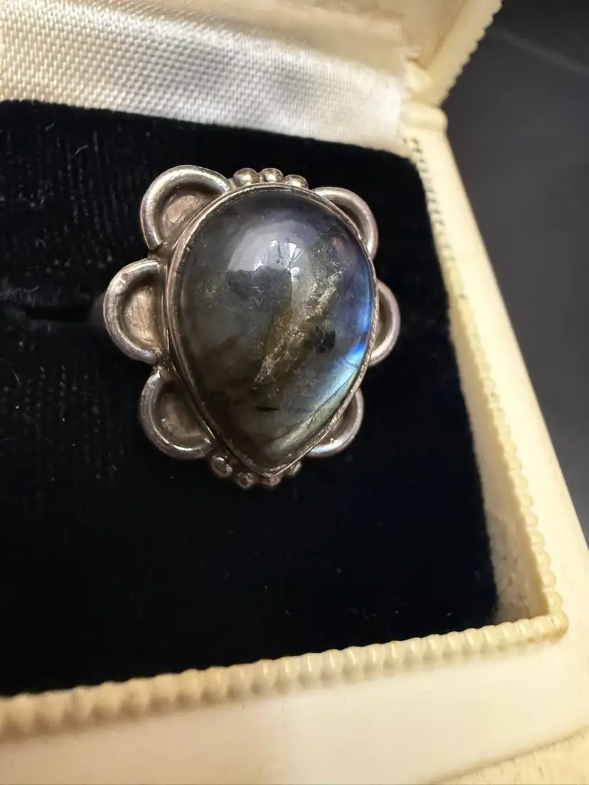 sterling silver ring featuring a pear-shaped labradorite gemstone - Size 10