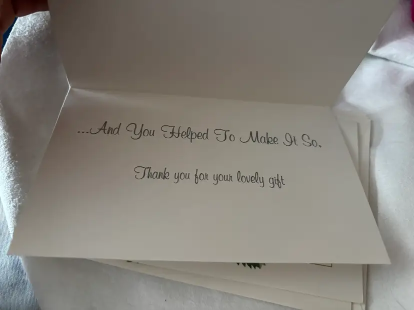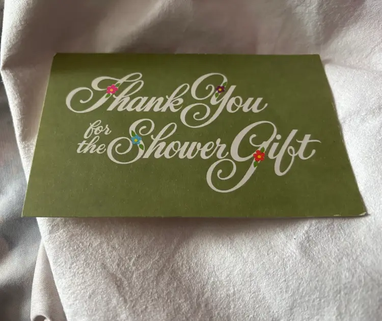 3 Rust Craft thank you cards for a shower gift. Features a beautiful shower theme with strawberries. Also one green thank you card for a shower gift made in Canada.