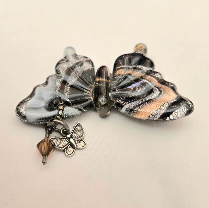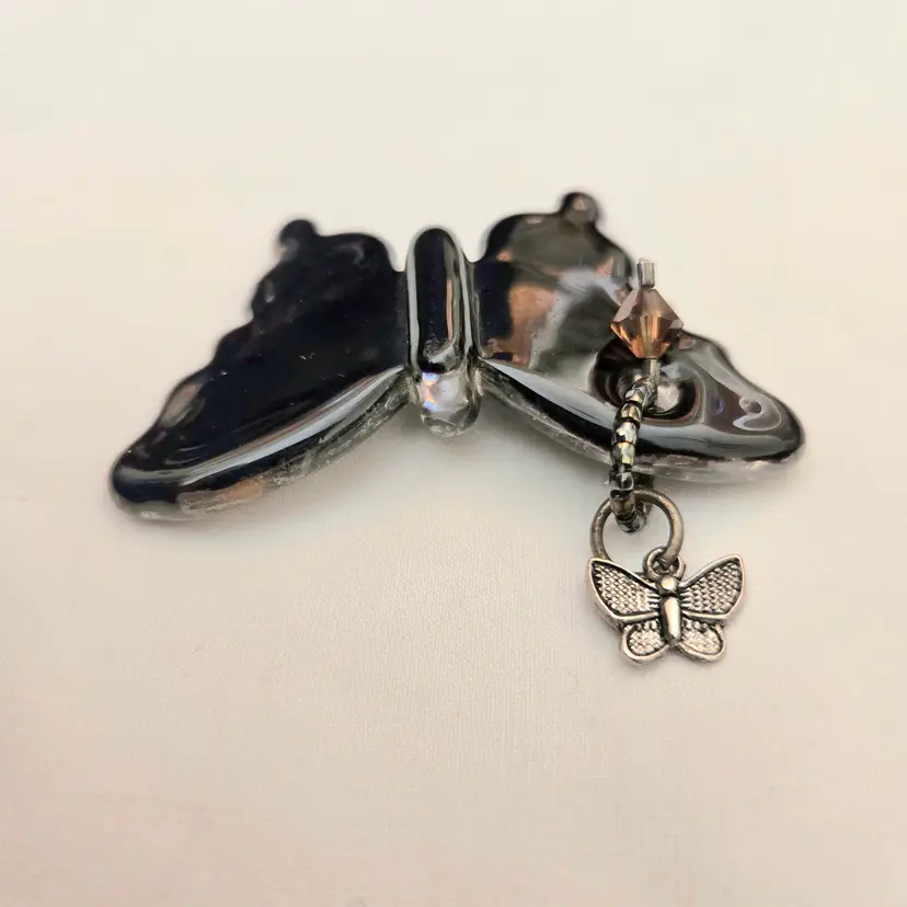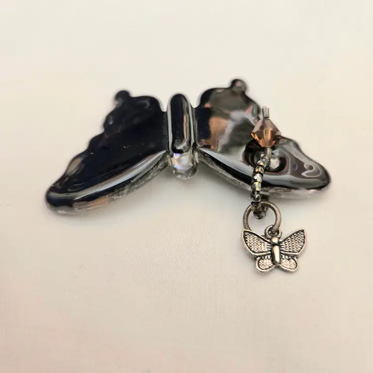 Studio Art Fused Glass Butterfly Pendant with Attachments 2¼" Wide Unbranded
