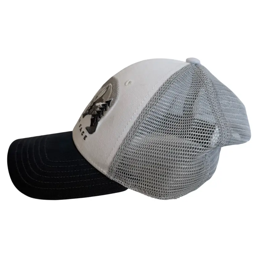 The North Face Embroidered Mudder Trucker Hat is a stylish and versatile accessory for both men and women. This snapback hat features a solid gray color with a white bear patch, perfect for outdoor-themed occasions like travel, casual outings, or workwear. Made from a blend of polyester and cotton with a canvas fabric type, this hat is suitable for all seasons and offers an adjustable mesh back for added comfort. The North Face branding adds a touch of authenticity to this classic trucker hat design.