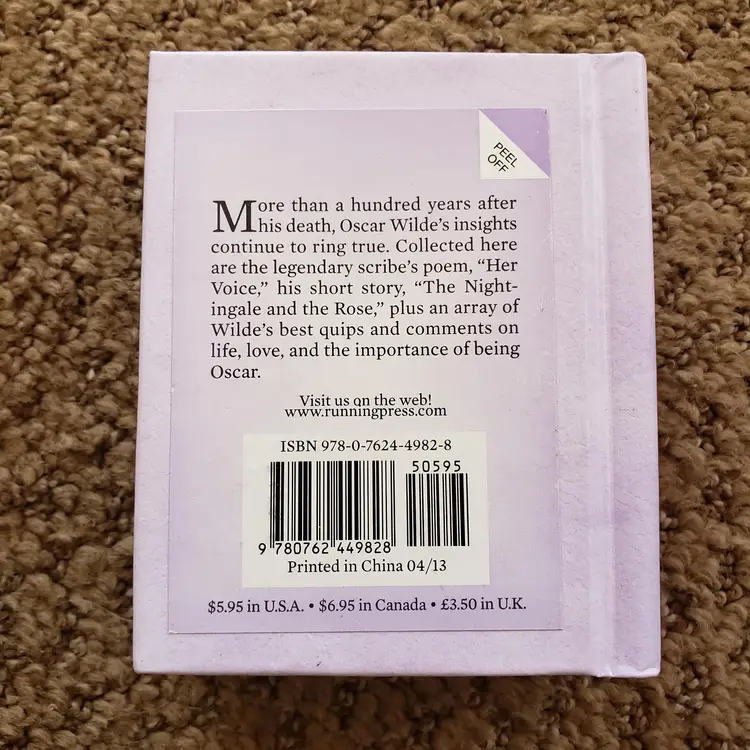 The Quotable Oscar Wilde Collection of Wit & Wisdom Running Press miniature 2013. Used condition with a bump and edgewear. Please view all the photos and read the entire item description and please ask any questions prior to purchase when possible.