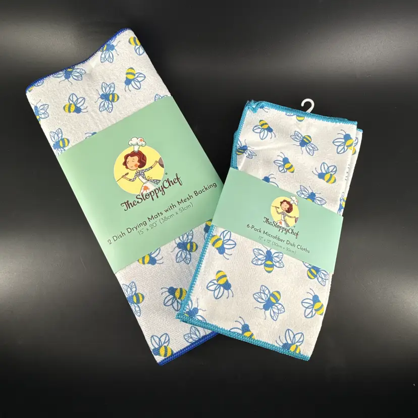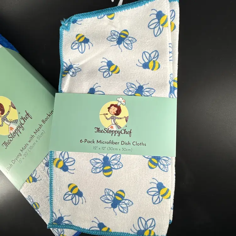 The Sloppy Chef 6 Pack Microfiber Dish Cloths & 2 Pack Dish Drying Mats
