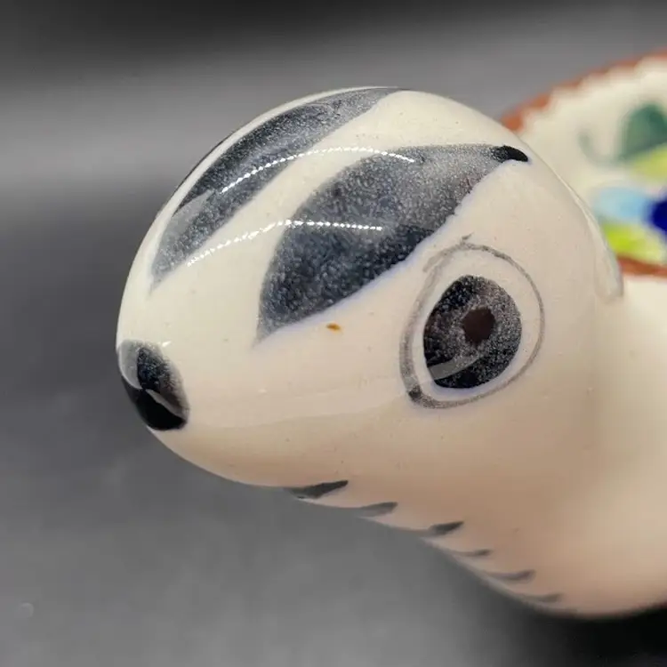 Keywords: Derpy, Figurine, Hand Painted, Colorful, Flowers, Floral, Blue, Green, Brown, Tan, Beige, Black, Home, Decor, Accent, Decorative, Kitchen, Living, Dining, Bedroom, Bathroom, Gift, Folk Art, Traditional, Ceramic, Clay, Marked