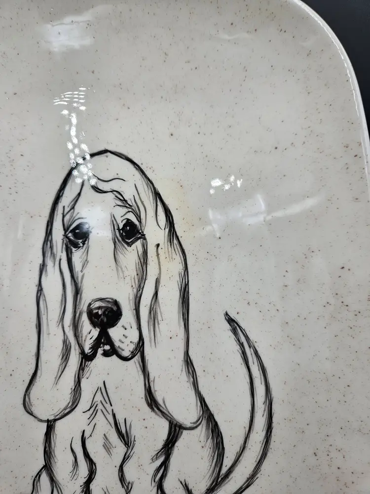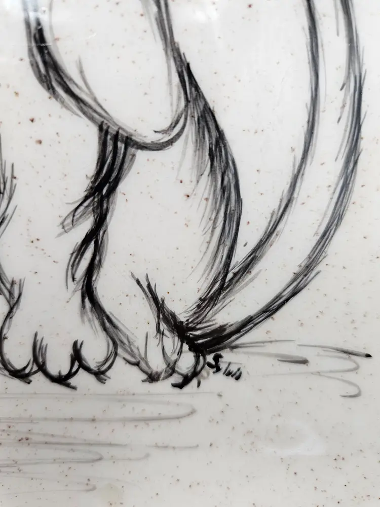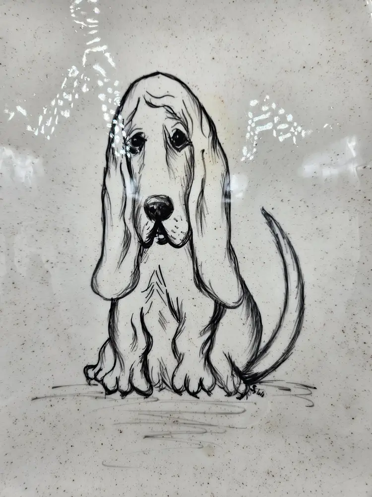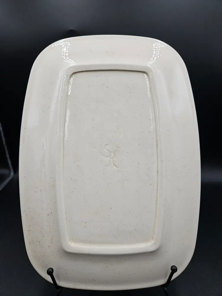 No chips or cracks. Lightscratches. Staining on front. Signed Sylvia? And on back SR.
