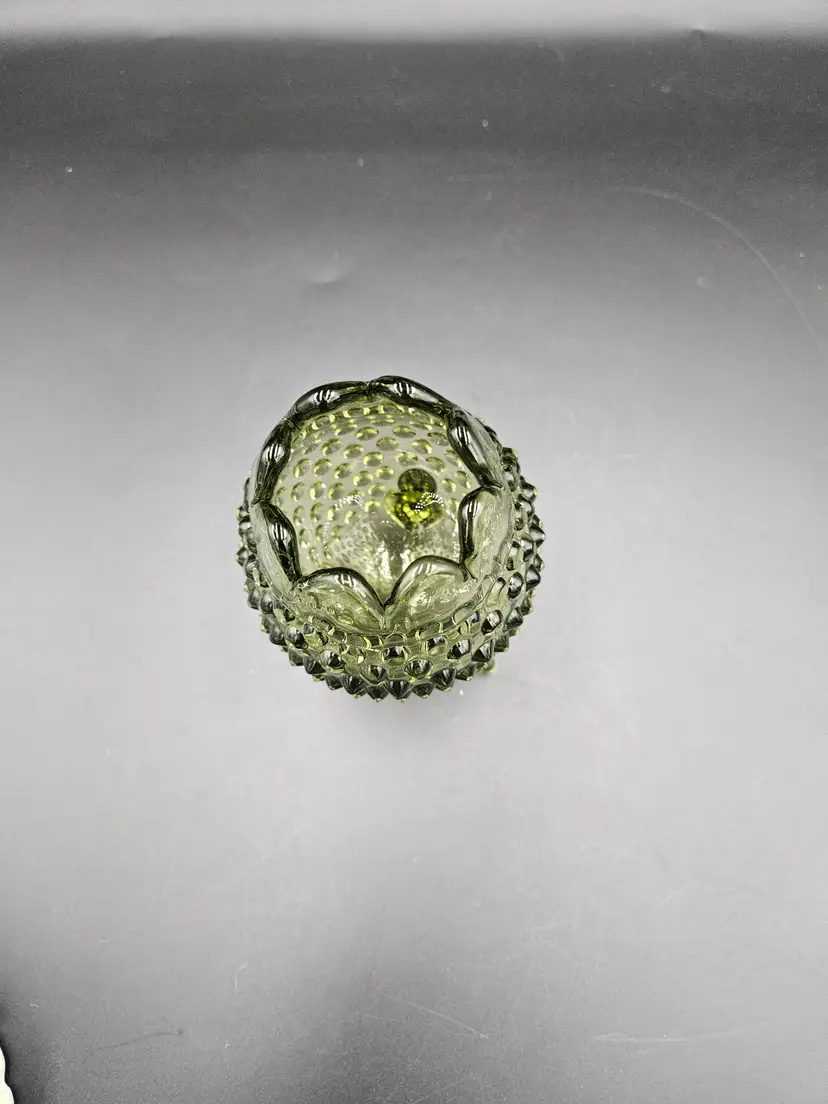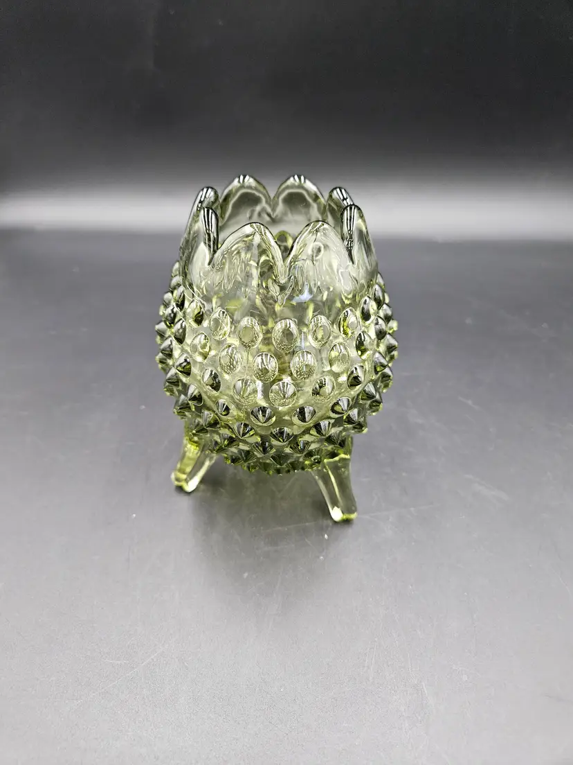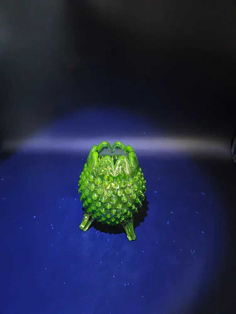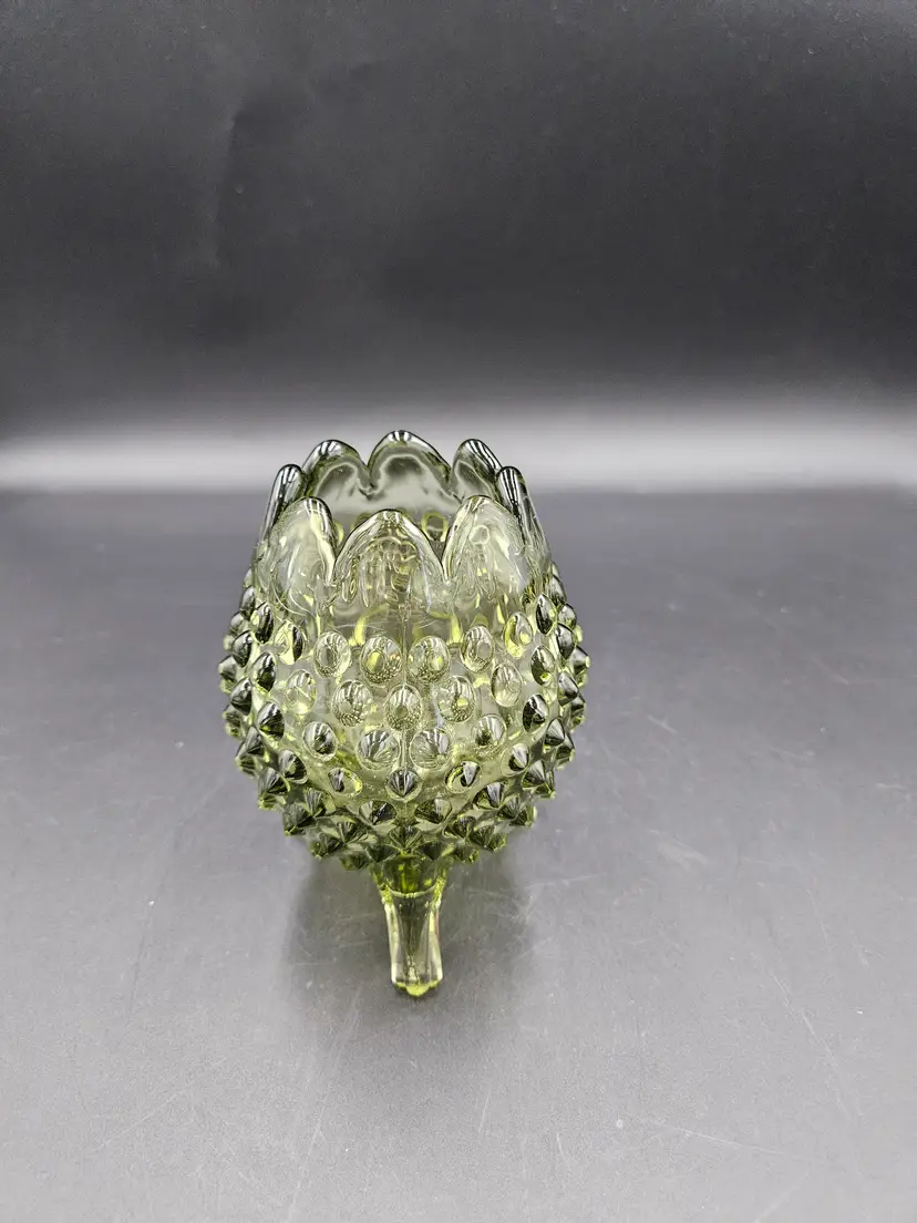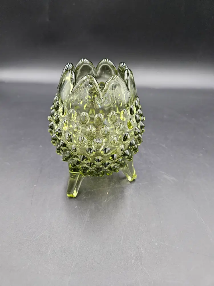 #TR16 Fenton Green Hobnail 3 Footed Egg