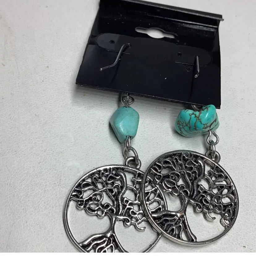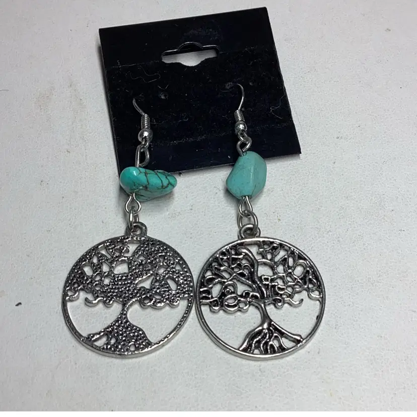 Tree Of Life & Tourquise Stone Pierced Earrings
