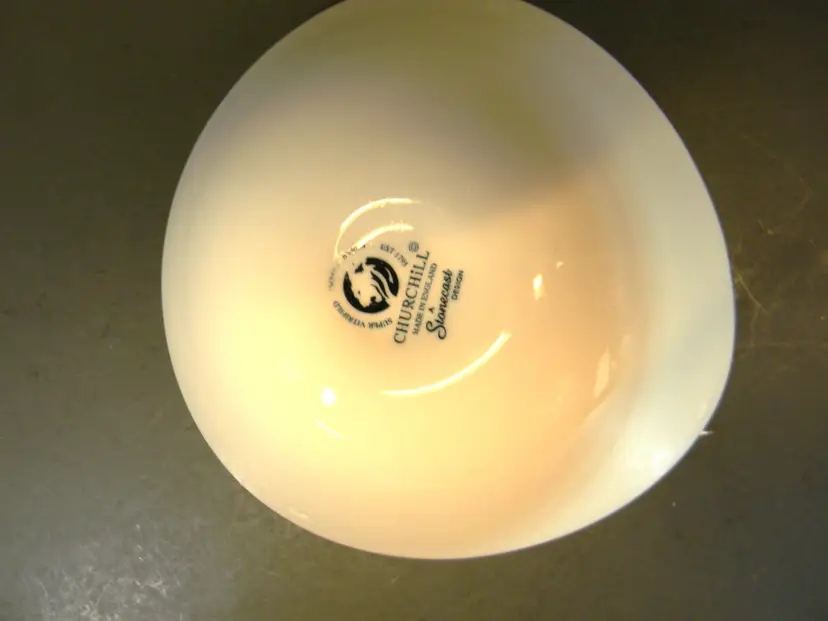 Triangle Bowl Churchill made in England Stonecrest Design Beautiful Bowl Dark around edges are rough but looks like they are from glaze firing No chips or cracks used condition see all photos before purchasing