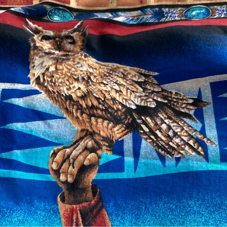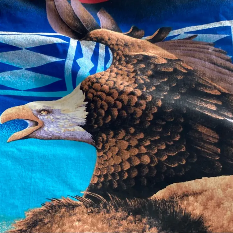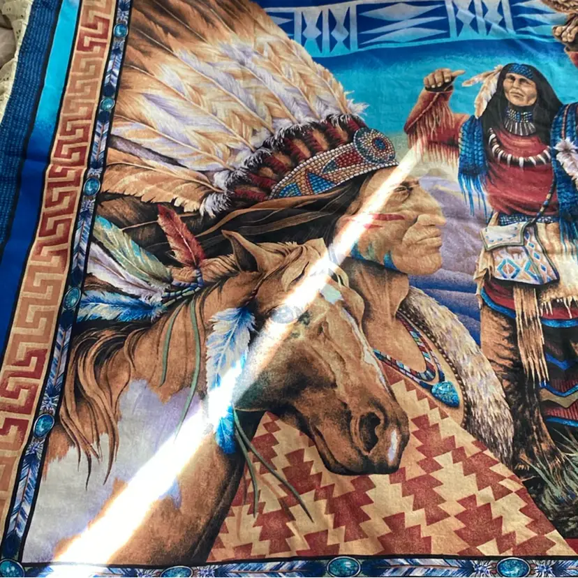TRIBAL ELEMENTS Chief Eagle Wolf Hawk Buffalo Fabric 100% Cotton Wall Tapestry