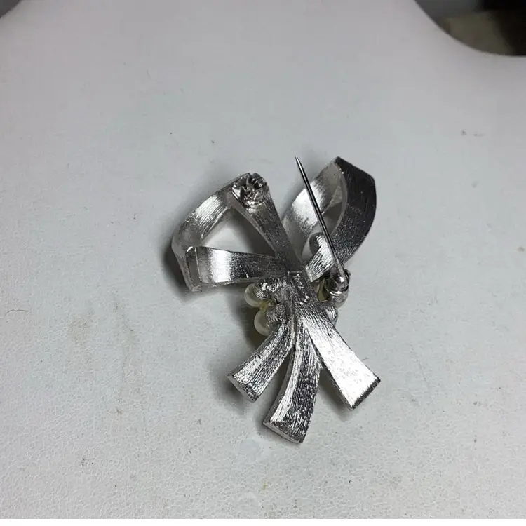 Trifari Silvertone & Faux Pearls Brooch 2”