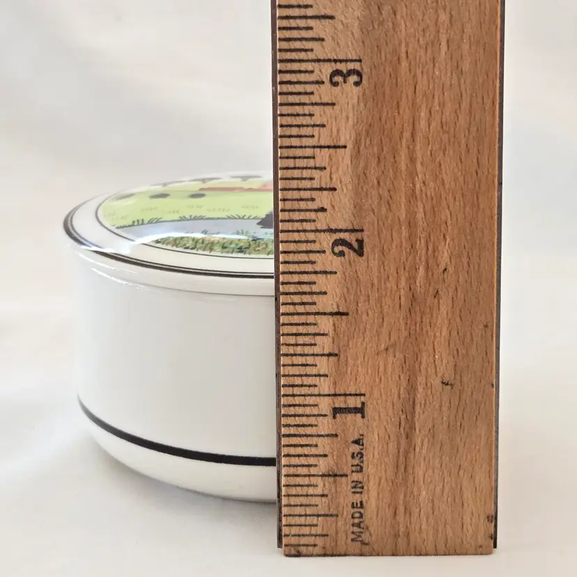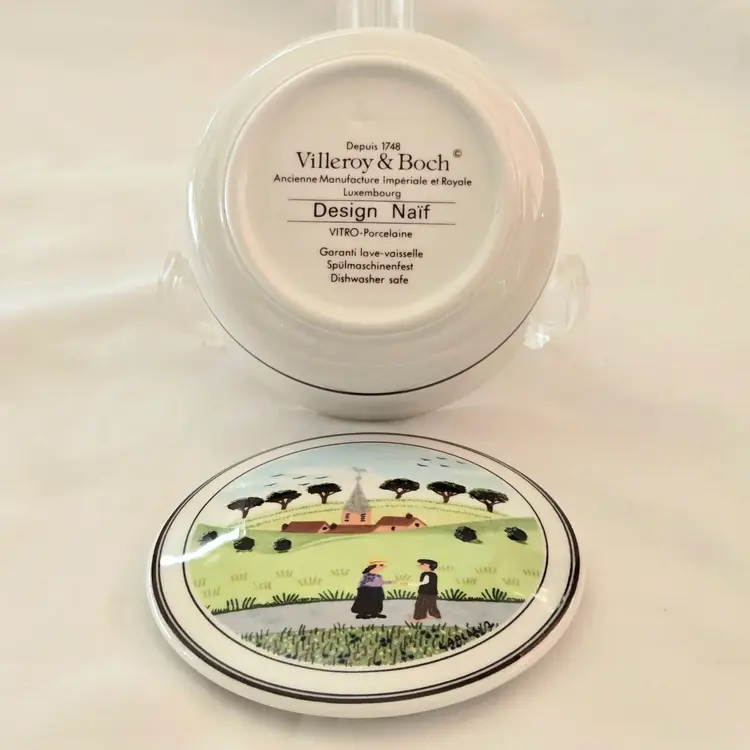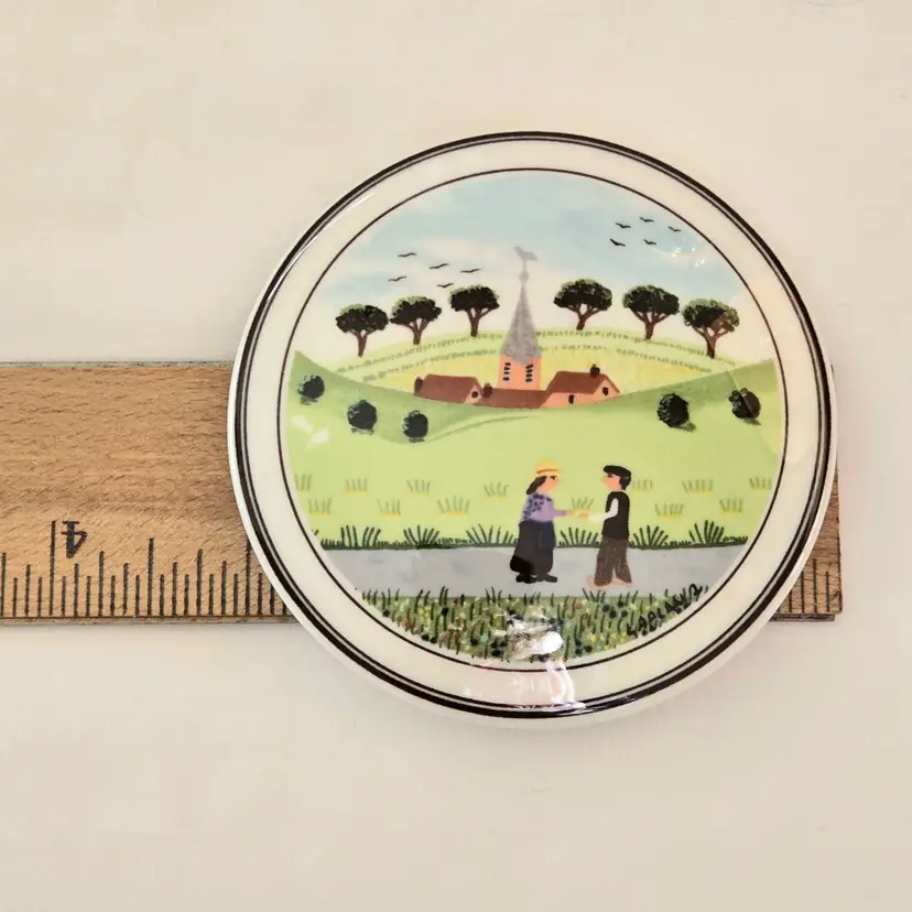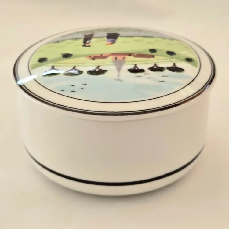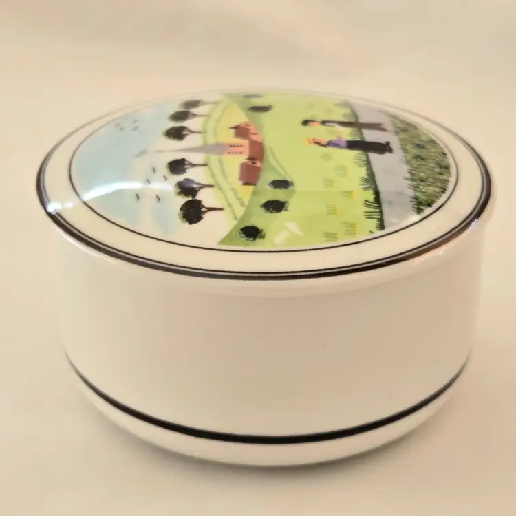 Trinket Box Country Neighbors Villeroy & Boch Church Luxembourg Design Naif 3" diameter approximately Signed. Used condition with a slight bit of dirt otherwise looks good. Please view all the photos and please ask any questions prior to purchase when possible.
