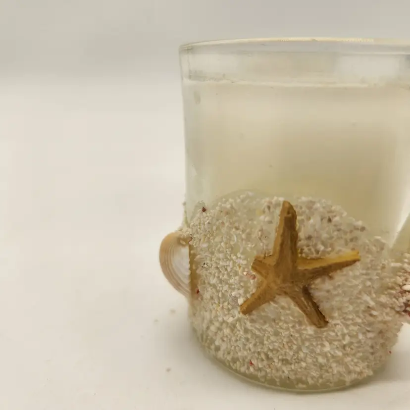 Keywords: votive candle holders, beach decor, seashells, starfish, sandy, coastal, nautical, table centerpiece, decorative, bathroom decor, accent piece, Mediterranean