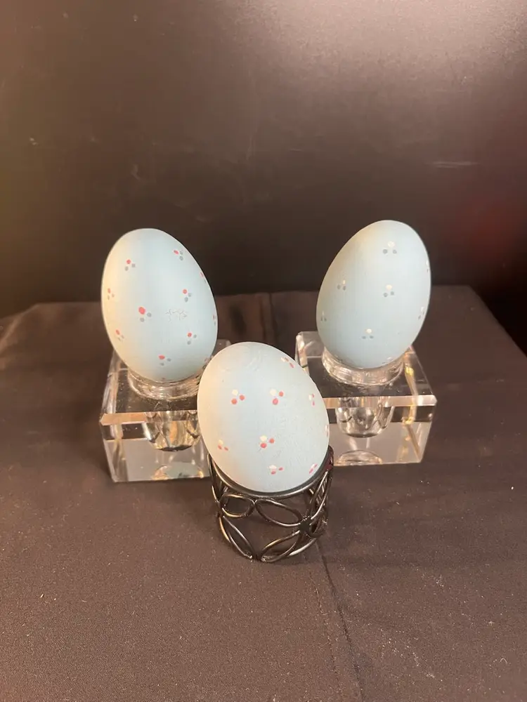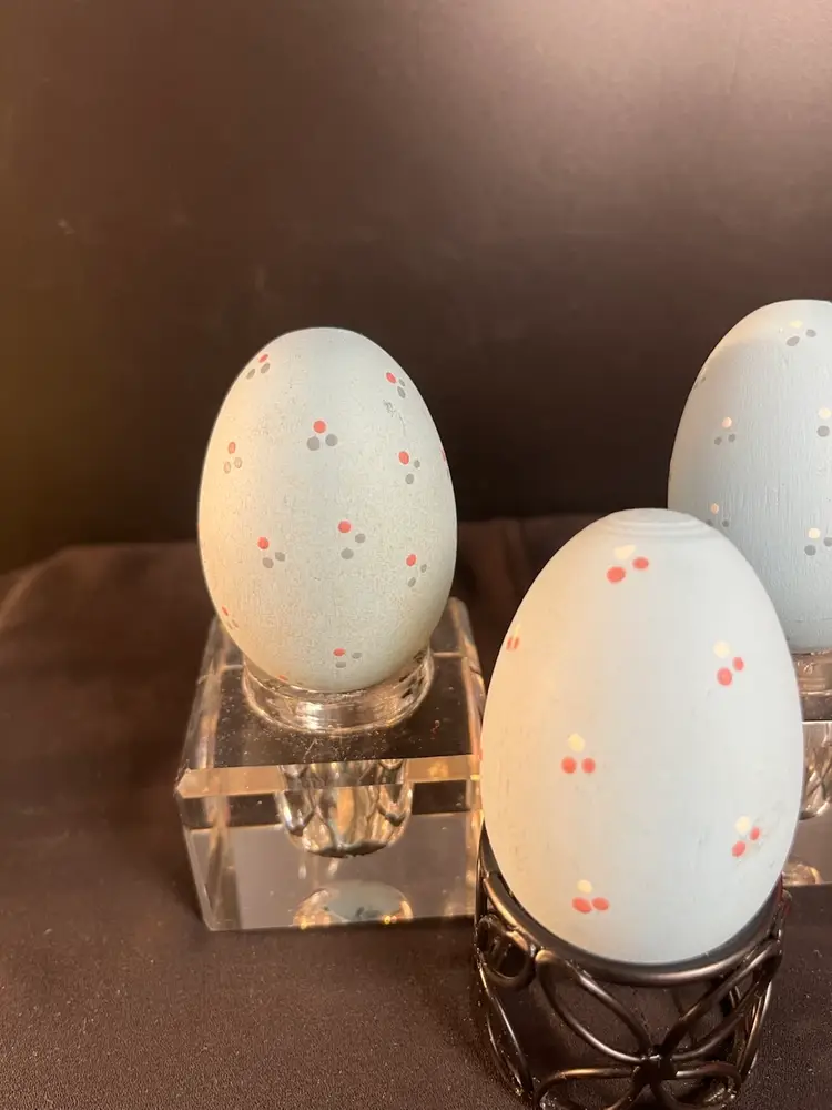 Wood turned and hand painted w/ small floral designs. Great to tuck into vignettes or assemblages. They each are approx 2.75" & 1.75" Diameter, together they weigh approx 5 Oz