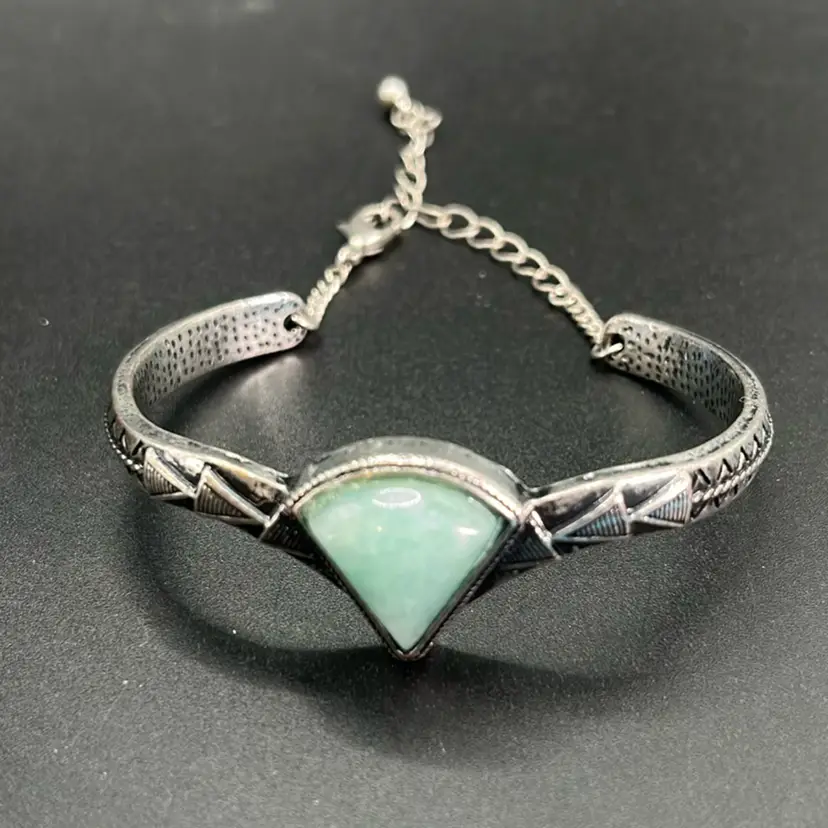 Turquoise Cuff Bracelet With Chain And Lobster Clasp Silvertone
