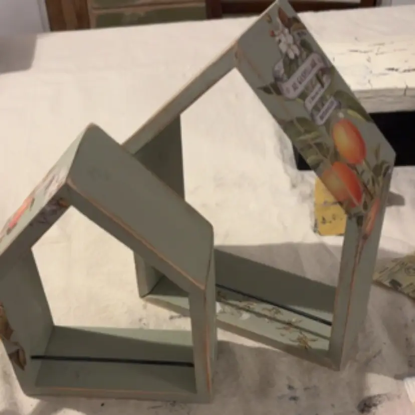 Upcycled During Live 2 Green Painted House Shelves Oranges