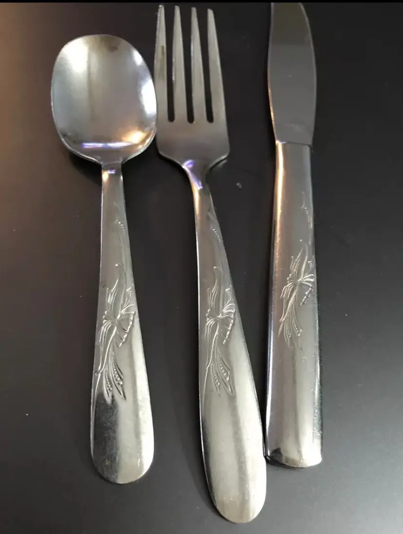 Utica Floral Swag Stainless Flatware Silverware Glossy Spoon Fork Knife USA