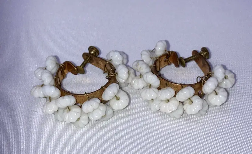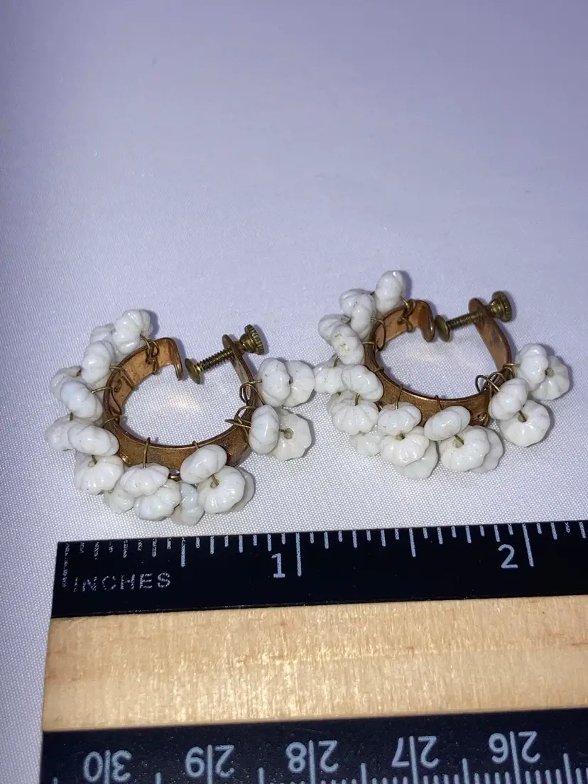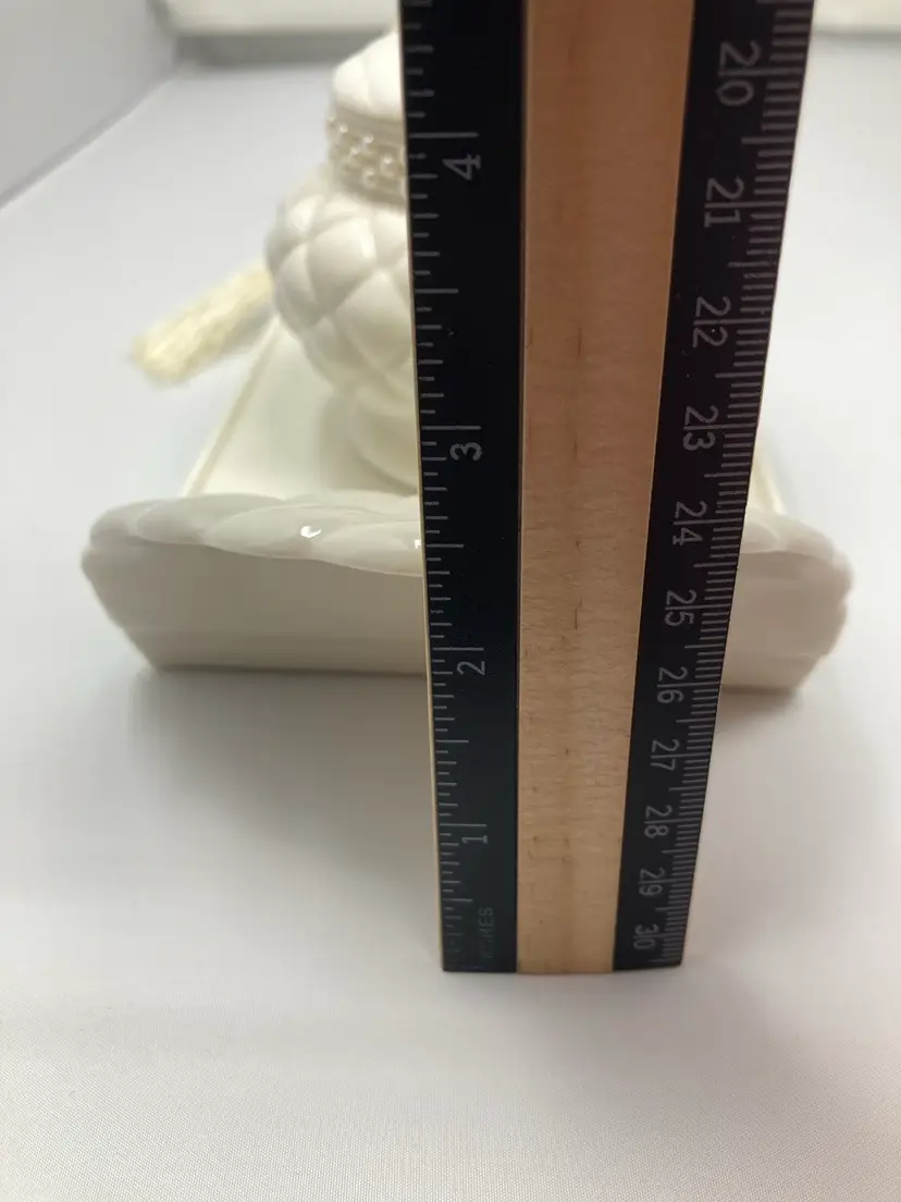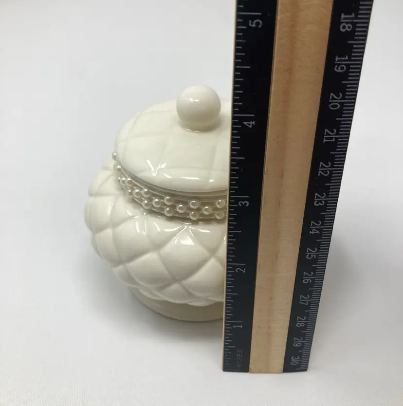 Vanity Vignette! Quilted Pattern Vanity Set (Tray 12” Long 4” Wide 2 1/2” Tall Atomizer Perfume Bottle 6” Tall 2 1/2” Wide Powder Box/Trinket Dish 4” Tall 2 1/2” Wide) Miniature Quartz Clock Working (1 3/4” Tall Just Over 1 1/4” Wide) Miriam Haskell Scarf Clip (1” Wide 1 3/4” Tall Needs Work) Vintage Milk Glass Screwback Earrings (1” Diameter) NEW to District? Enter code Michel42 into your wallet prior to your first ever purchase and save $5 off any $10 or more! Give me a Follow and I WILL Follow you back!