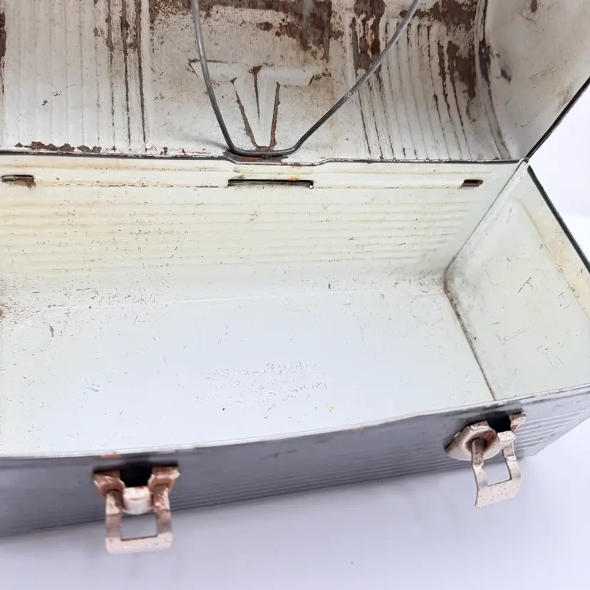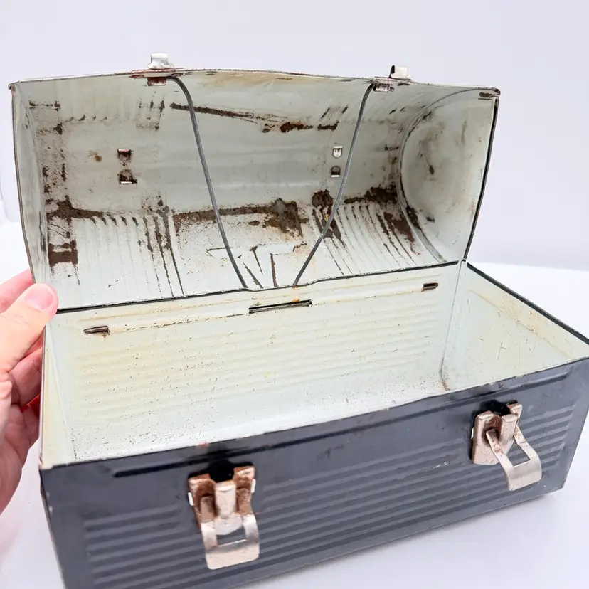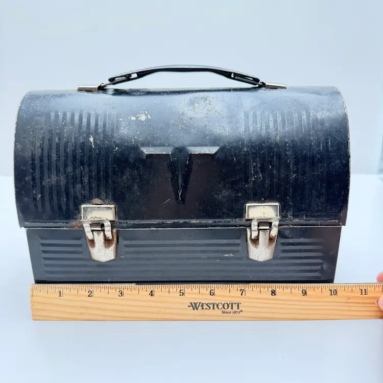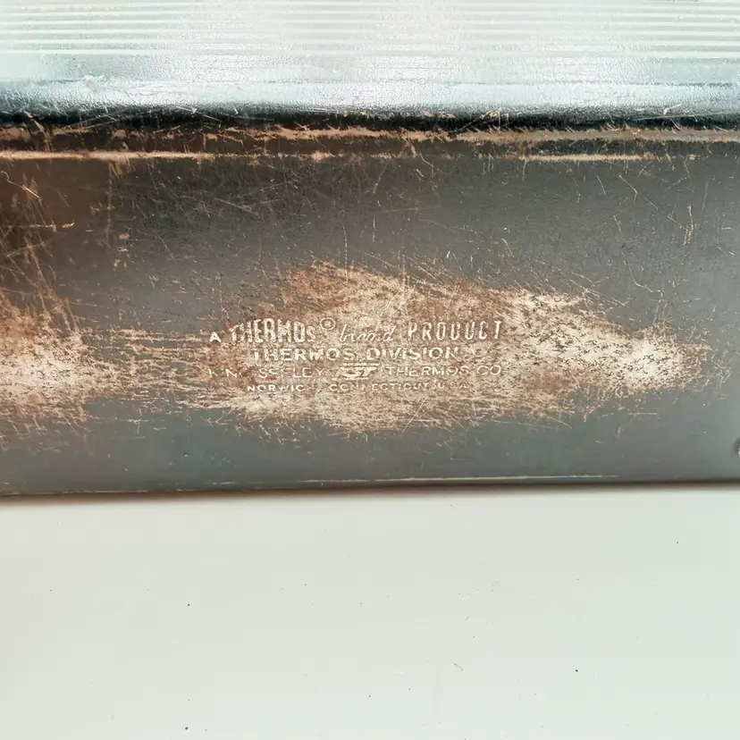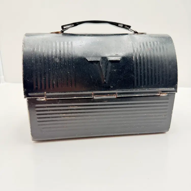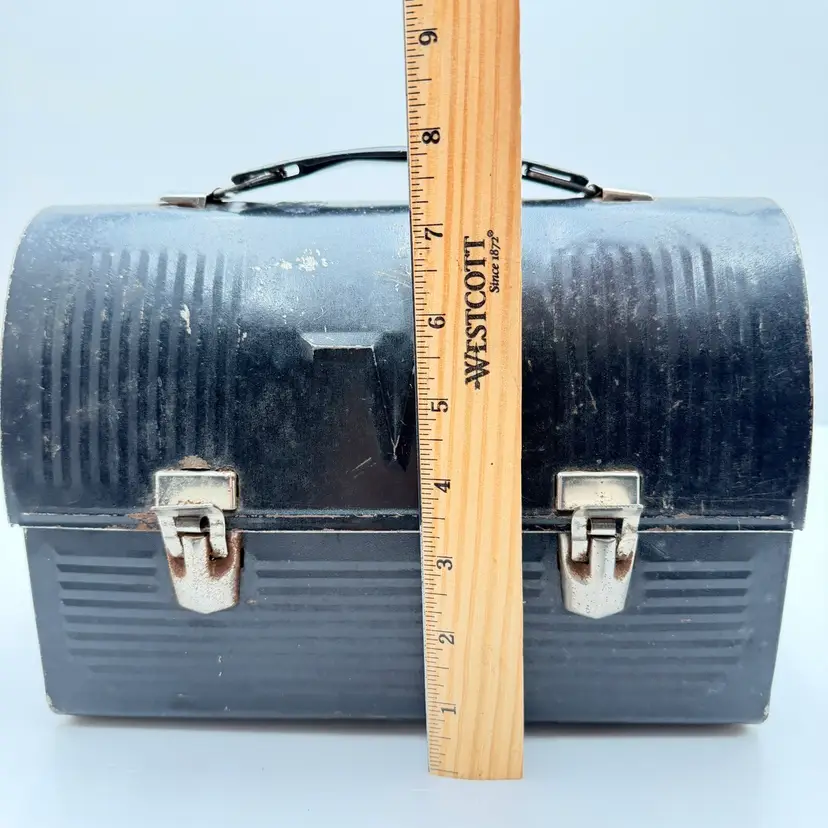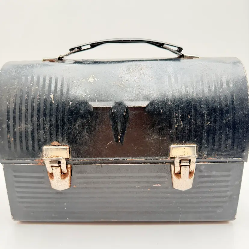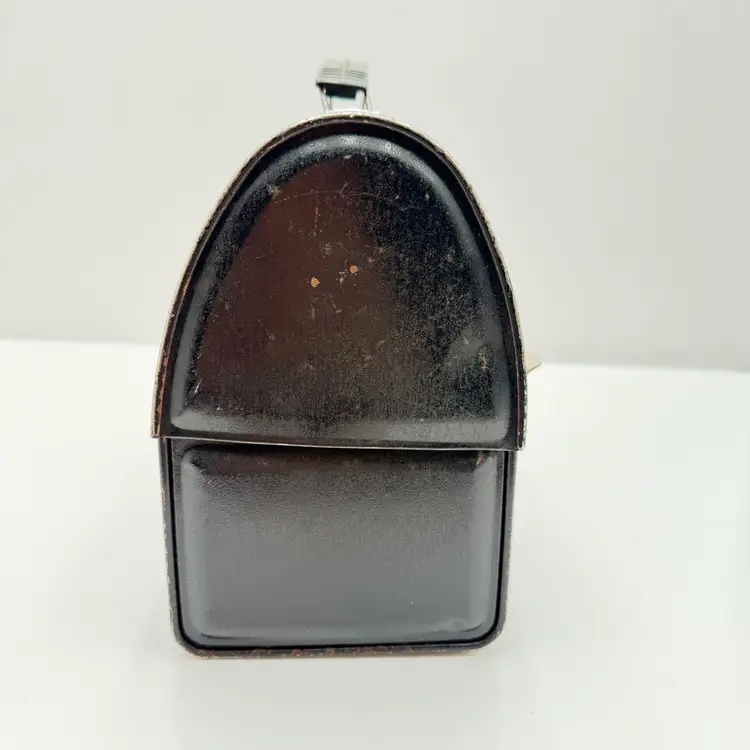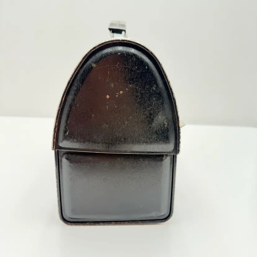 Very Old Black Thermos Metal Lunch Box With Latch Closure