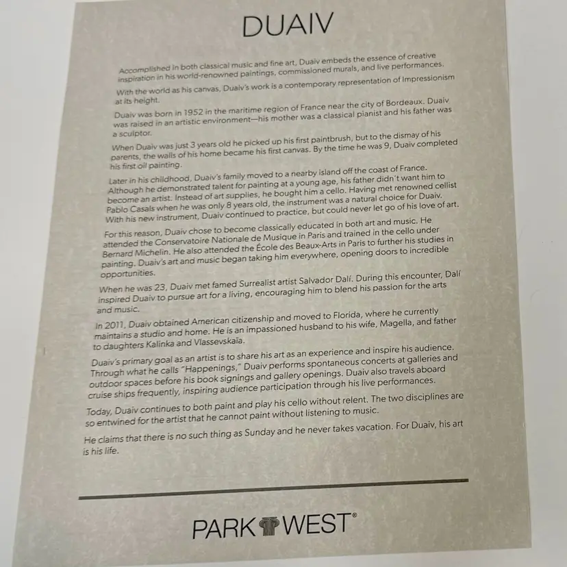 Duaiv was born in the maritime region of France in 1952 and is also an accomplished classical cellist.