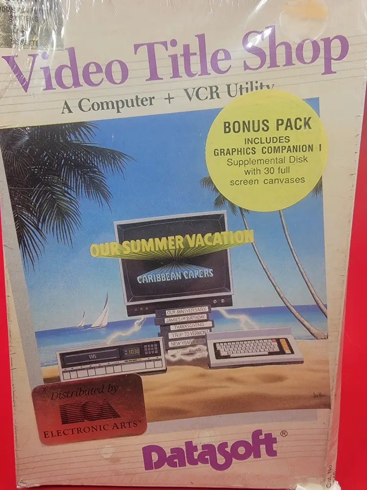 Video Title Shop Atari/Commodore 64/128 VCR Utility 1986-87 DataSoft New Seales