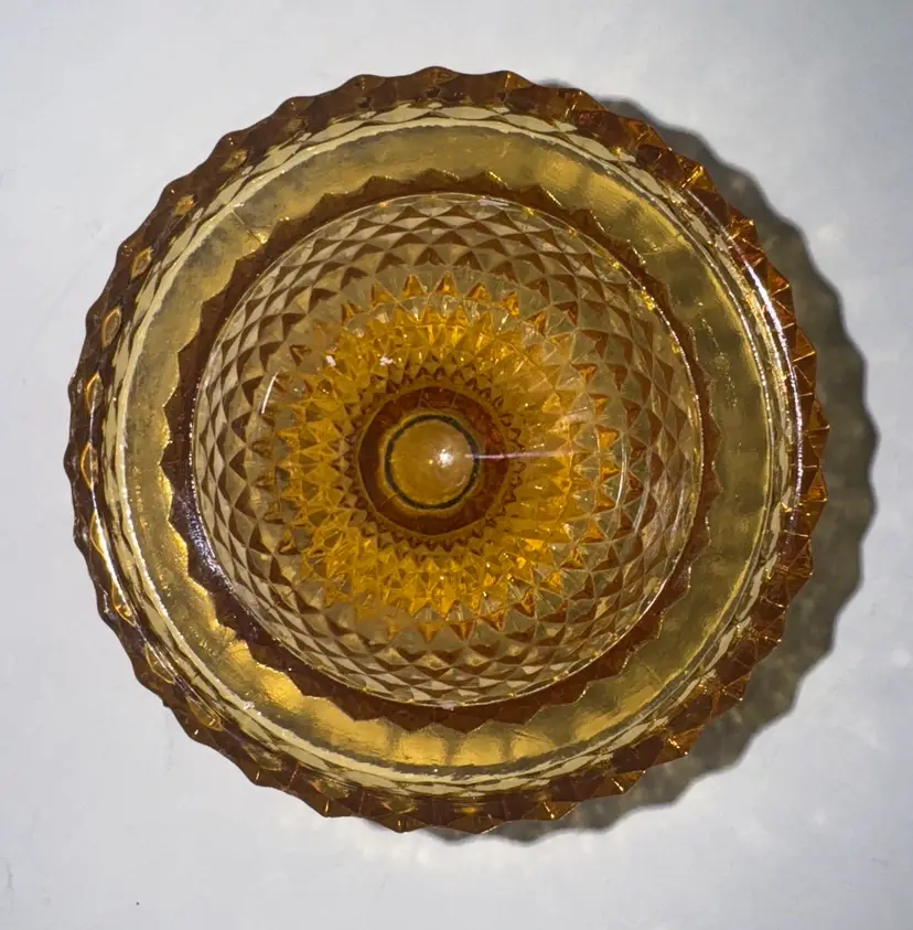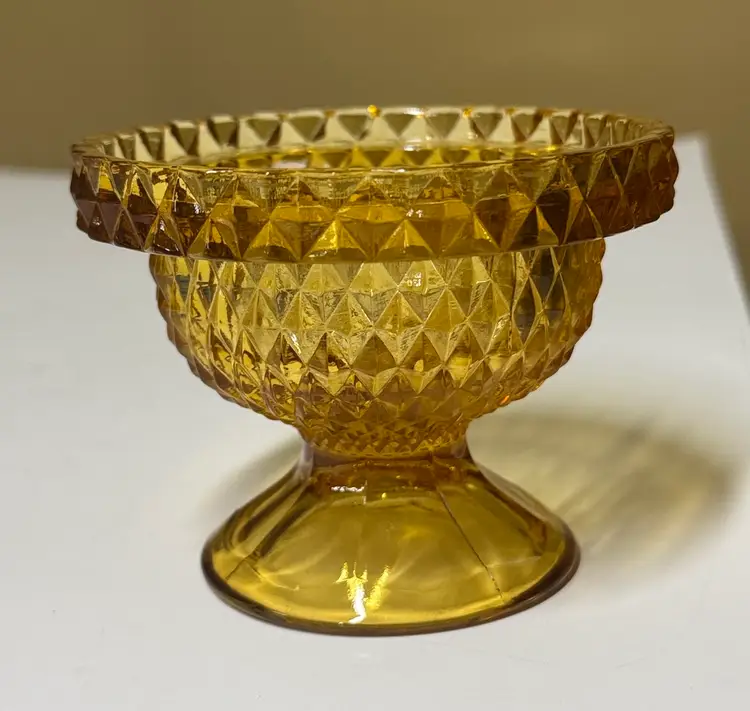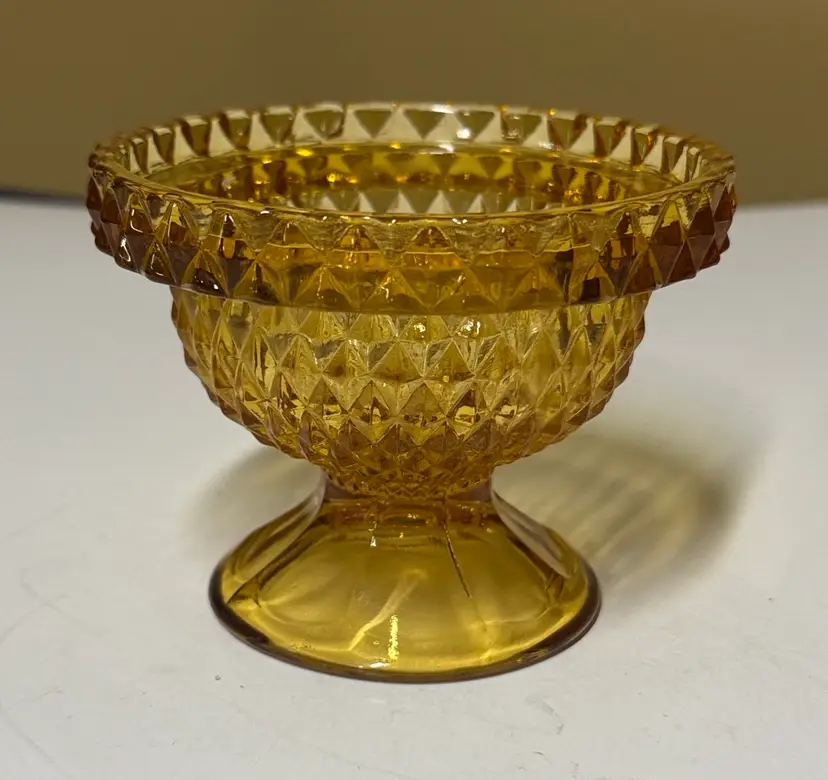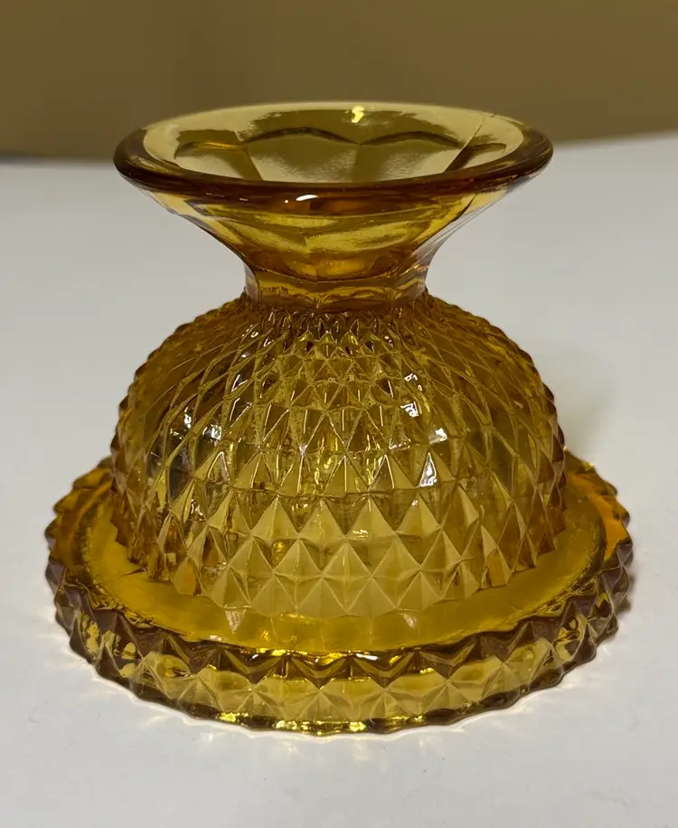 Elegant amber glass with a textured design. Perfect for decor. Vintage Viking Glass Diamond Point Amber Fairy Lamp BOTTOM ONLY. 3” tall 3.75” diameter Excellent condition with no breaks or chips (96124263)