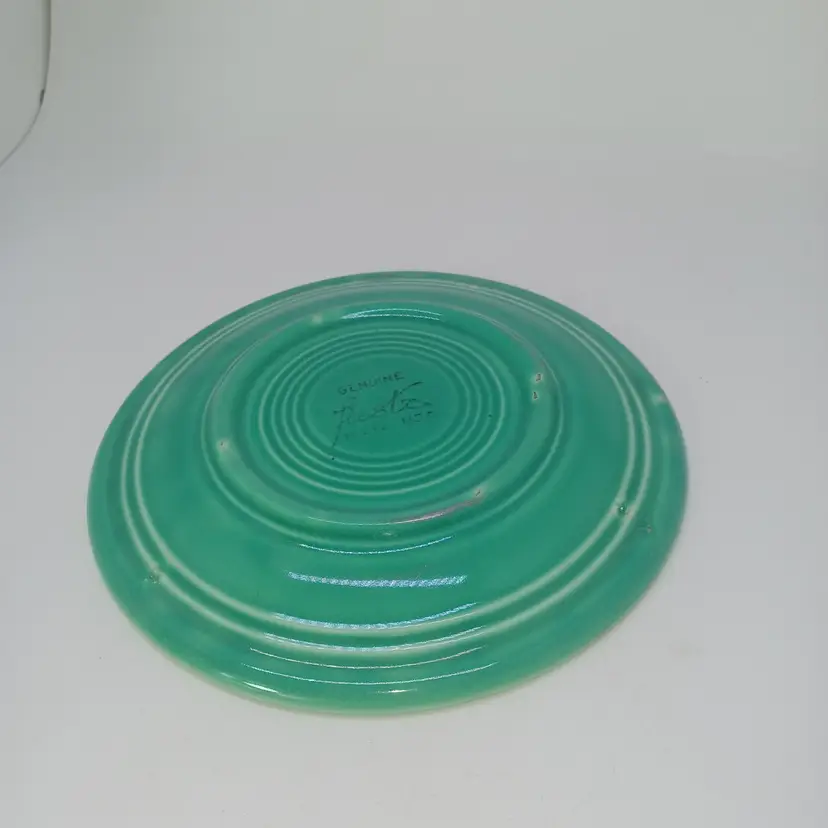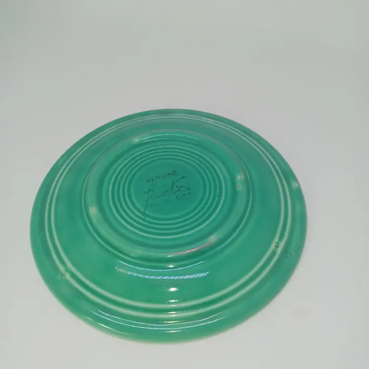 Vintage 1936 Original Green Fiestaware bread plate 6 in Homer Laughlin In good vintage condition with no chips or cracks does have a little bit of glaze skip from the manufacturing process but nothing that detracts from use or display may have some utensil marks a little bit of Bar Keepers friends will polish it right up please see all pictures as they are the best description all items from a smoke-free home with pets experienced fragile shipper